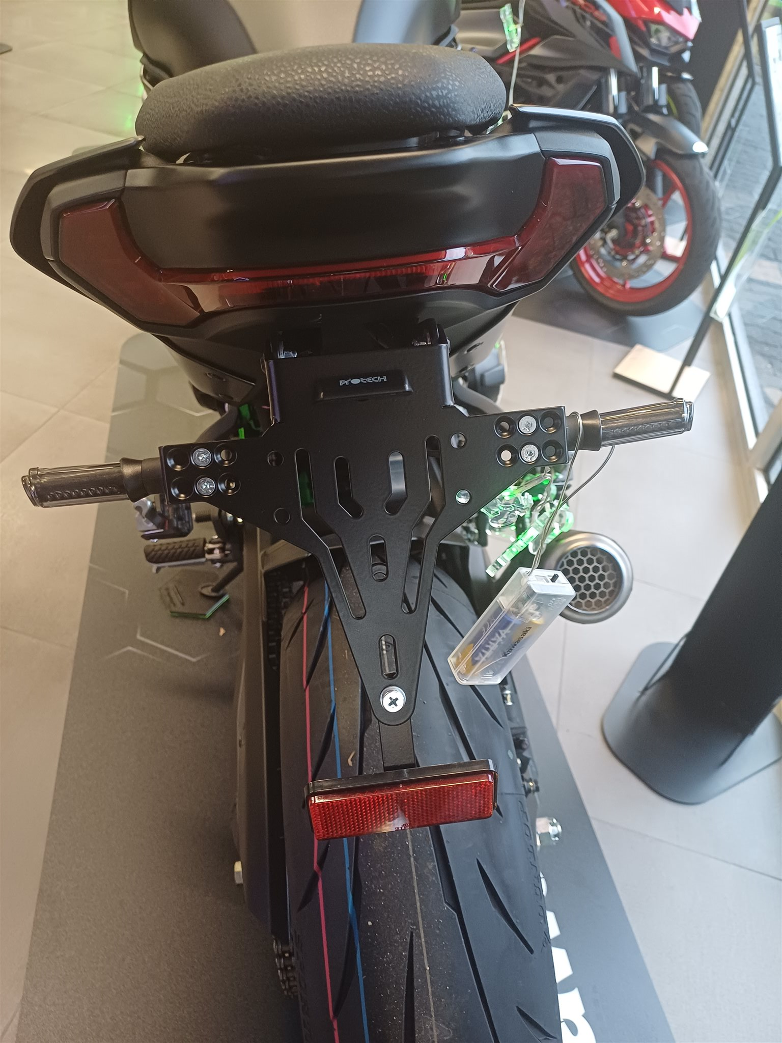 kleiner Kennzeichenhalter + LED Shaft Blinker v.+h., SC Project Sportendtopf, Alu Fußrasten v.+h, Sporthebel verstellbar = 10.479,-