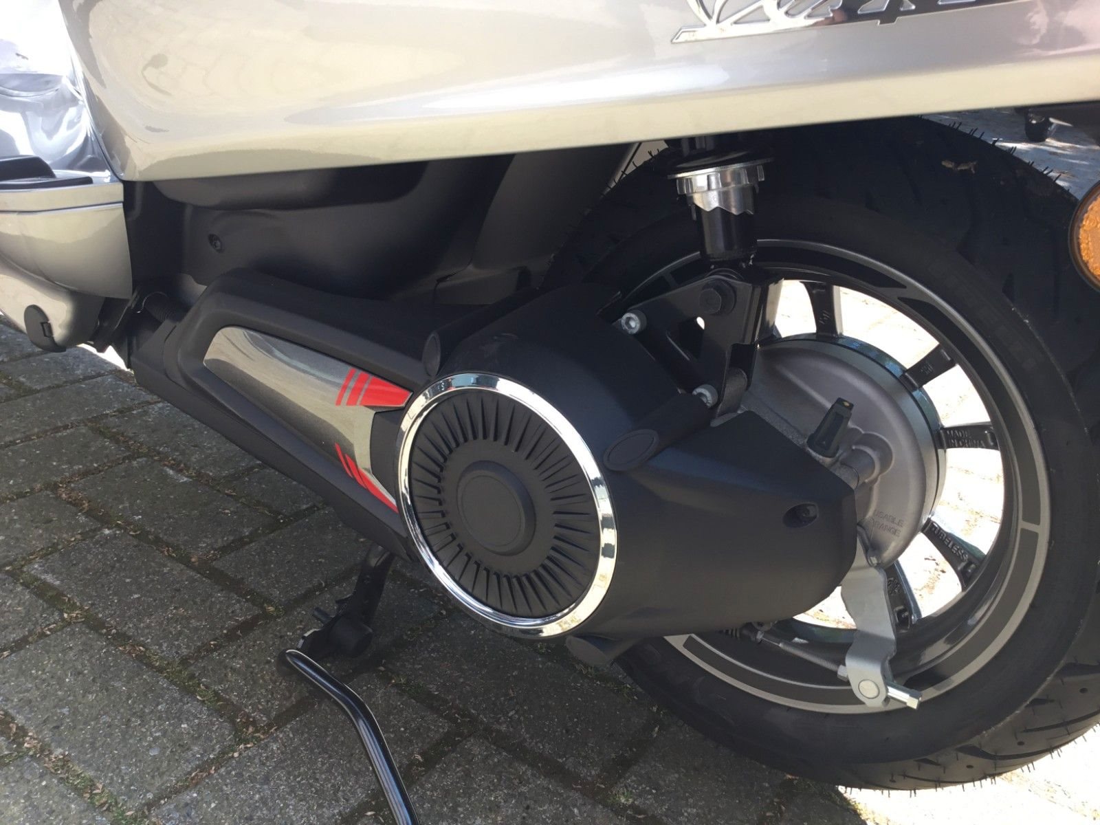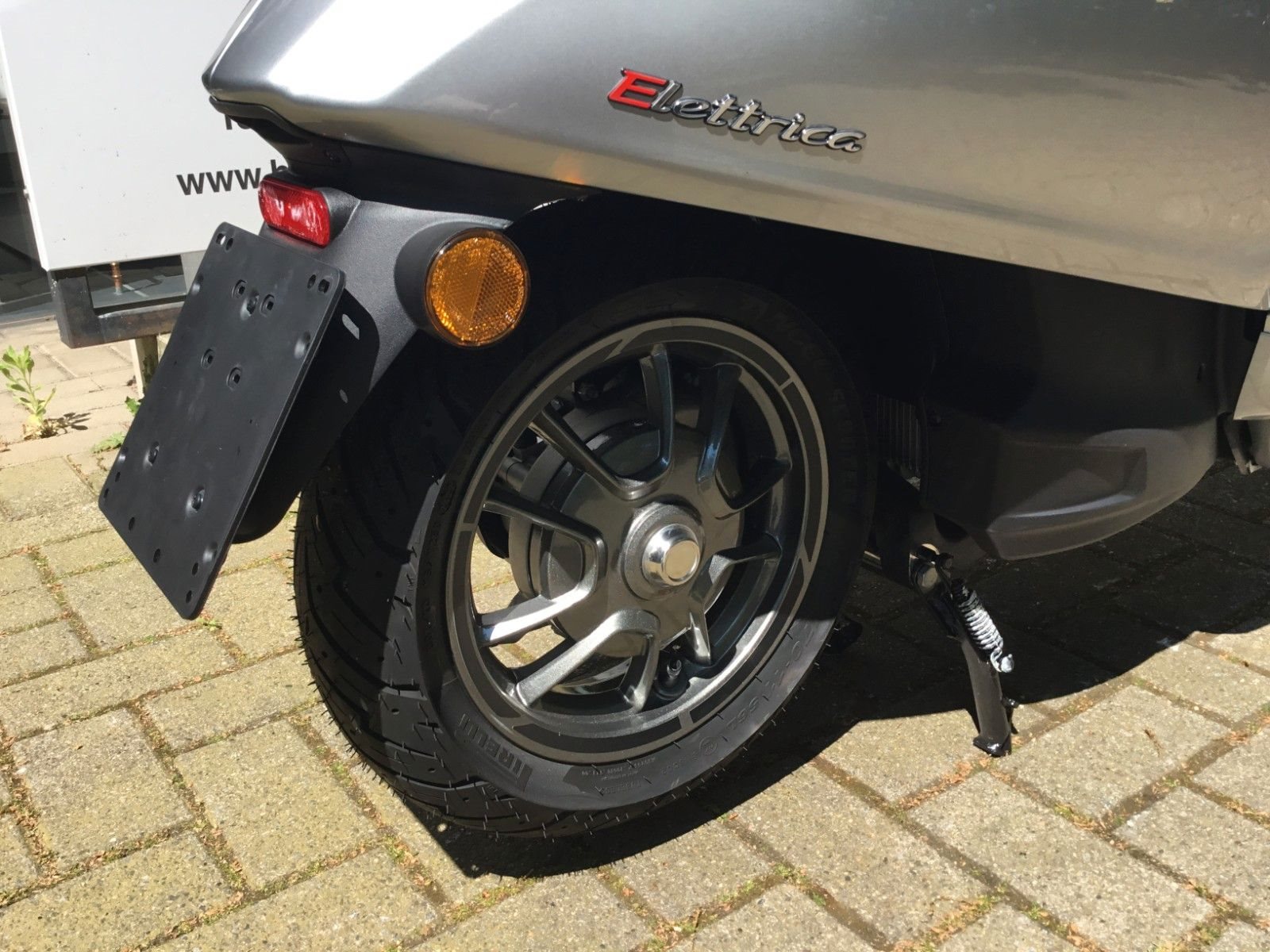 - Gestalten Sie Ihren Style Zeitlose Eleganz im futuristischen Look prägt den Auftritt der Vespa Elettrica. Die Bodyparts stets in leuchtendem Silbergrau, ist die Vespa Elettrica an ihren auffälligen Farbapplikationen auf den ersten Blick zu erkennen. Wahlweise steht die Elettrica mit vier Dekorfarben - Blau Elettrico, Gelb Lampo, Schwarz Profondo und Chromo - zur Verfügung.