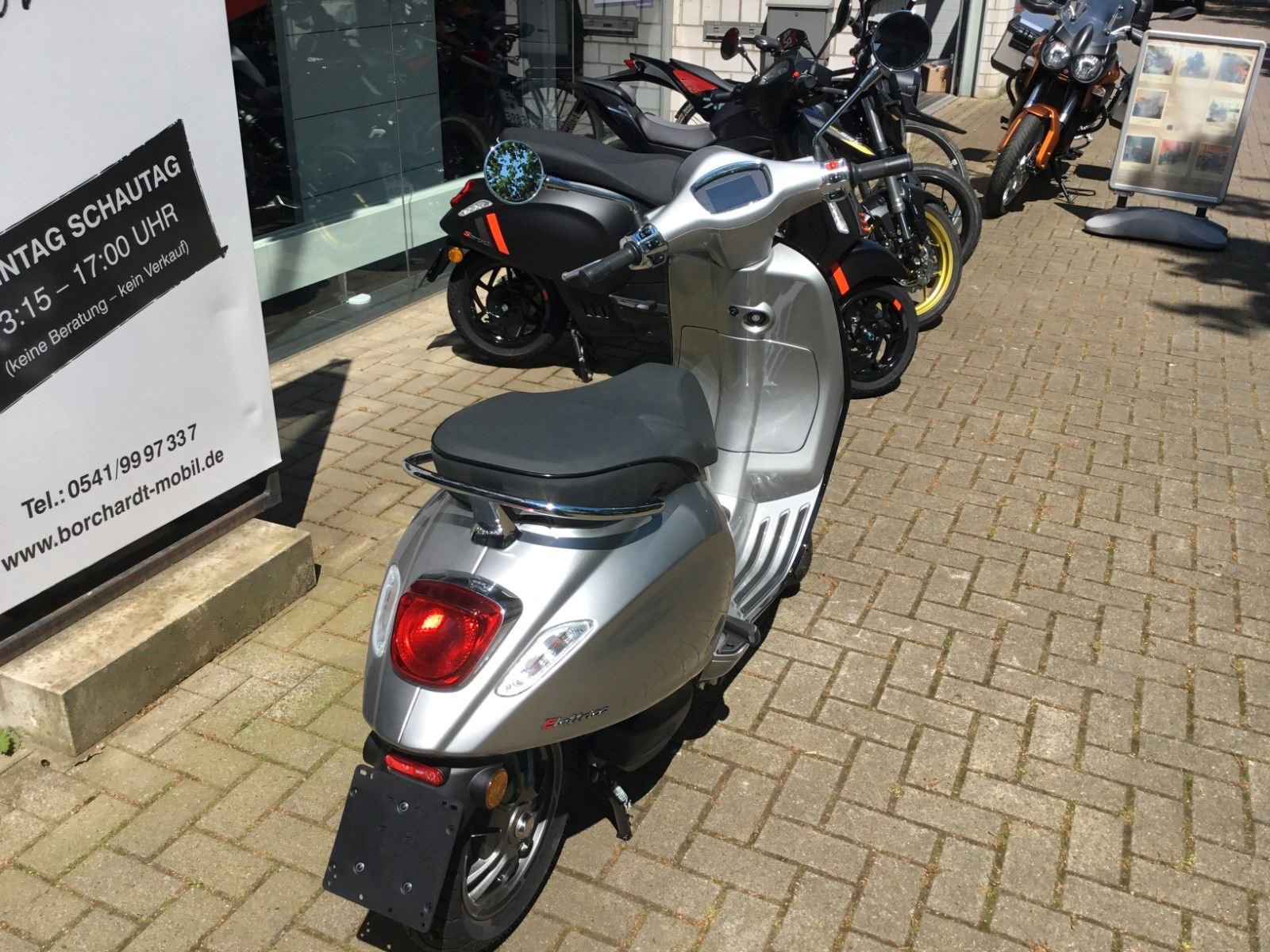 - Ihr Beitrag für eine bessere Umwel Egal ob Sie im Energiesparmodus "Eco" oder im "Power"-Modus durchstarten, die Vespa Elettrica überzeugt mit kraftvollem Drehmoment. Absolut leise, fast lautlos unterwegs, sind Sie mit Lithium-Ionen-Batterie und Energierückgewinnungs-System autonom im Alltagsverkehr unterwegs. Sie werden es genießen und bewundert, wenn Sie mit Ihrer Elettrica clean und leise, ganz im Vespa-Style Ihren Beitrag für die Umwelt, für ein Plus an Lebensqualität leisten.