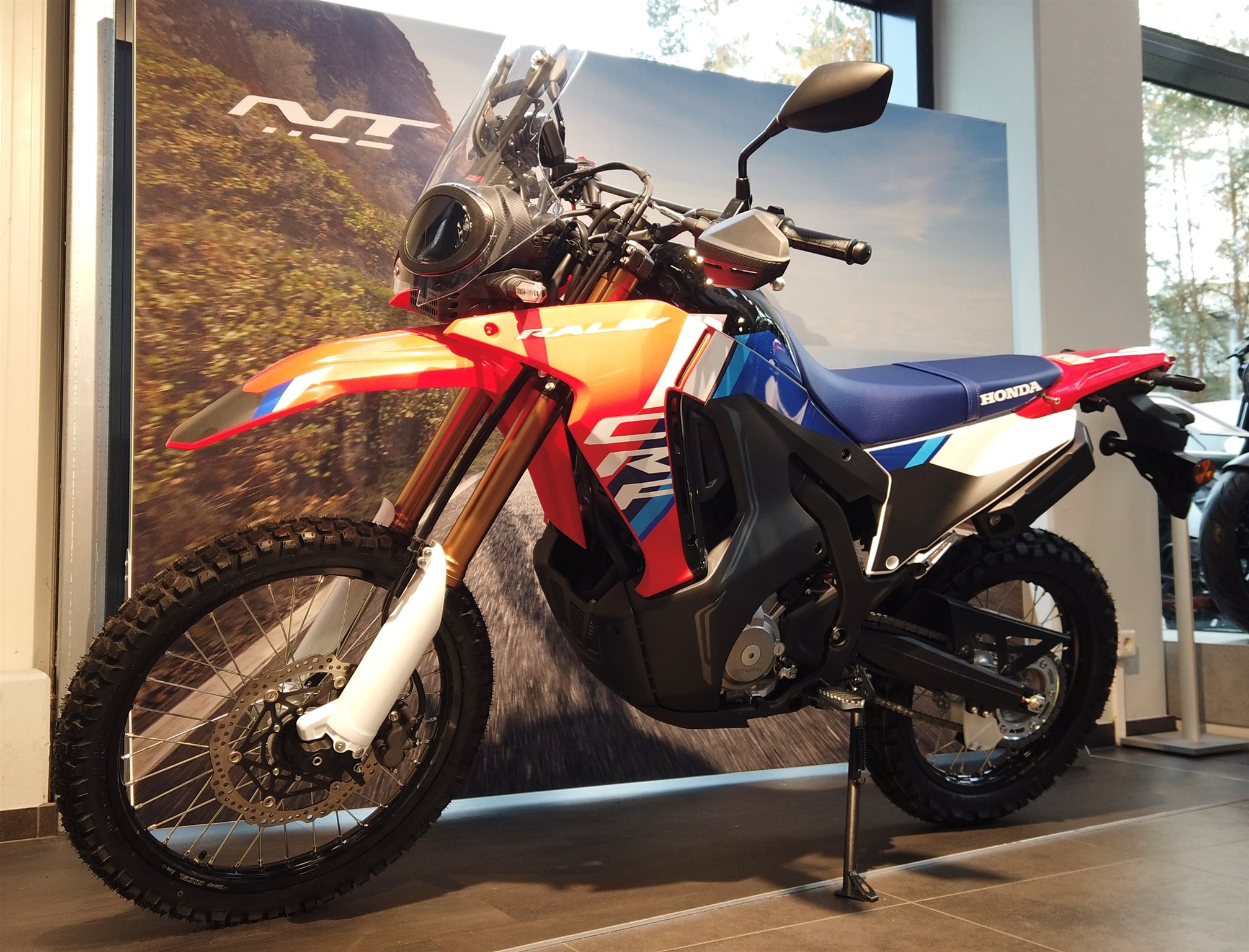 Eine Maschine für große Abenteuer auf der Straße und im Gelände. Die neue kleine CRF300 RALLY überzeugt auf ganzer Linie. Mit einem Design, das eng an das der Wettkampfmaschine HRC CRF450 RALLY angelehnt ist, ist diese Maschine einerseits langstreckentauglich und bietet dank eines großen Tanks und windschnittiger Frontverkleidung und Cockpitscheibe komfortable Offroad-Eigenschaften. Die jetzt noch leichtere CRF300 RALLY mit mehr Leistung und höherem Drehmoment ist der perfekte Reisepartner in der Stadt oder auf der ganzen Welt.