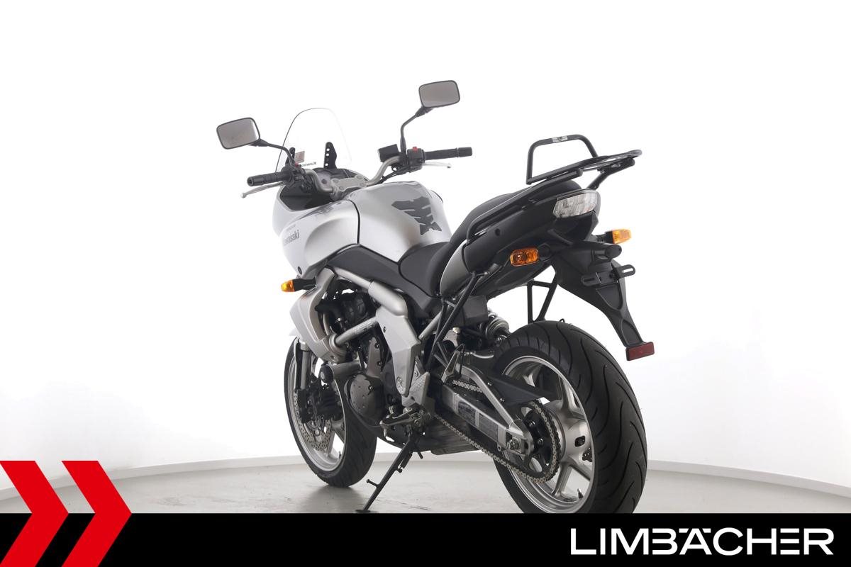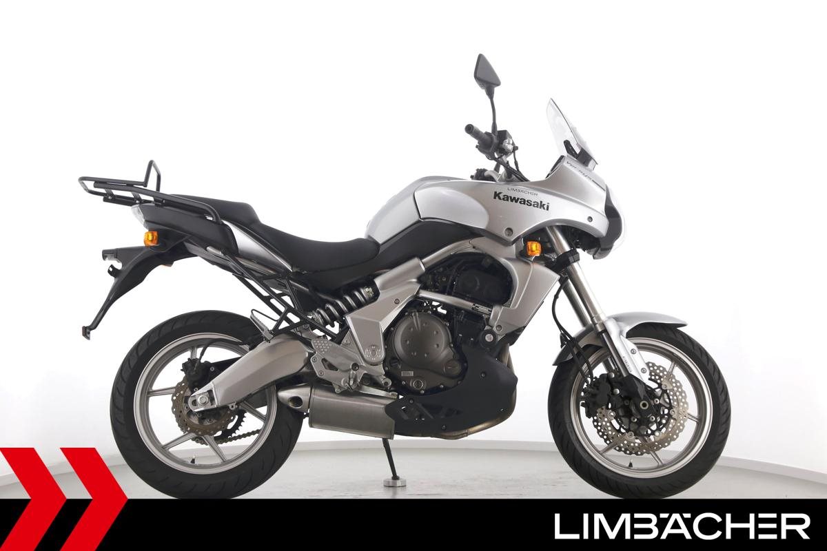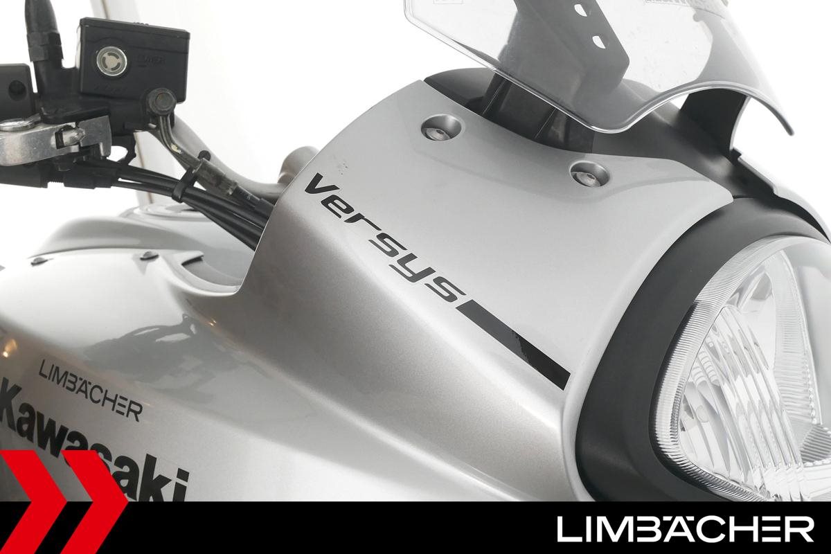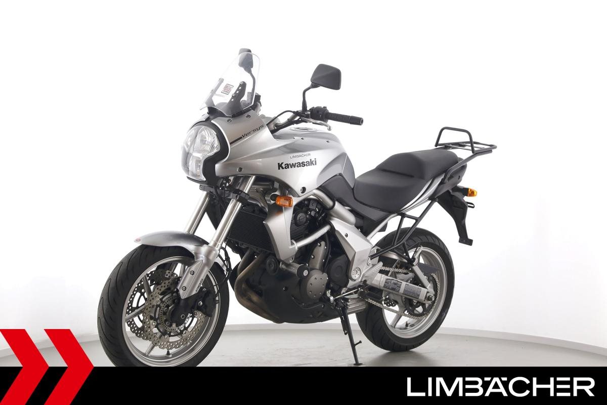 Eine Kawasaki Versys 650 in gepflegtem Zustand u.a. mit Drosselung auf 35 kW und Hepco & Becker-Gepäckträger.