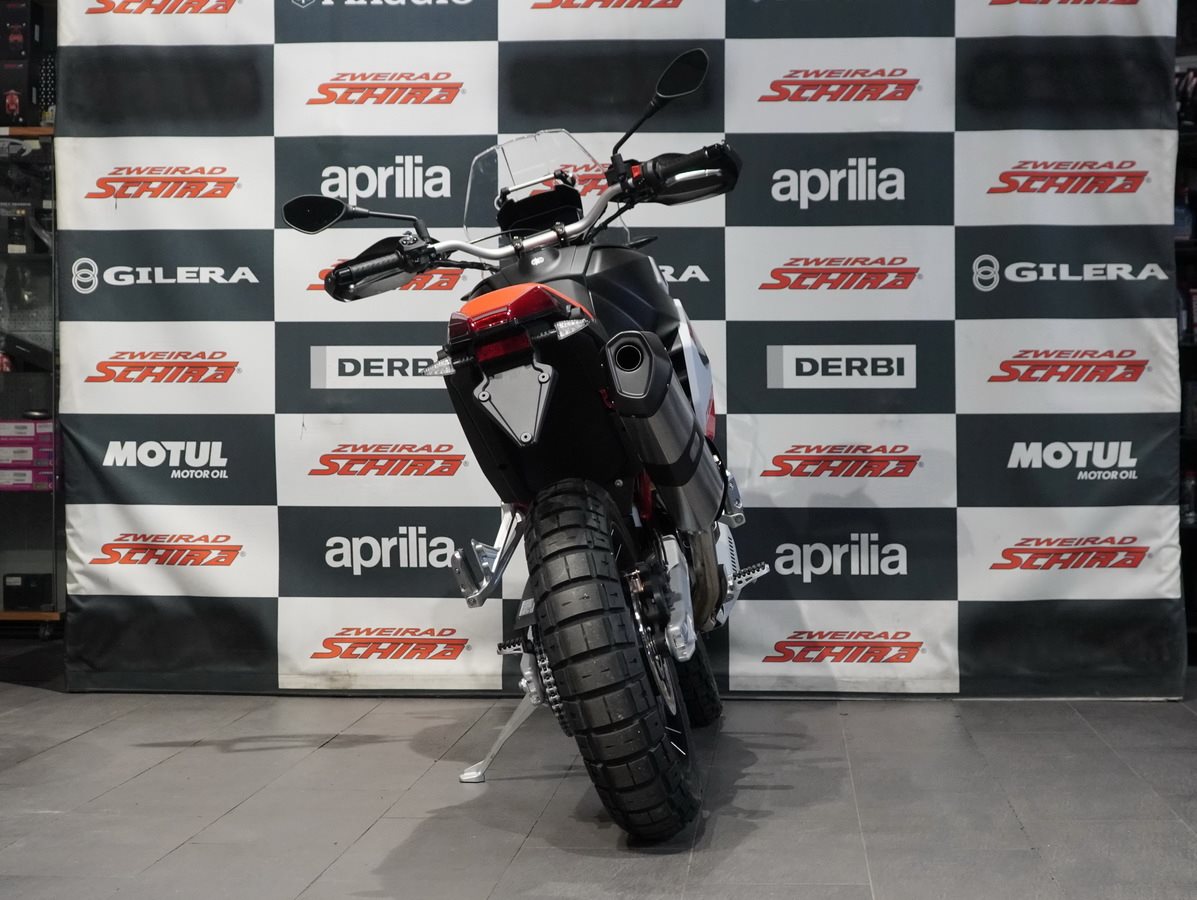 Der flüssigkeitsgekühlte, Euro 5+ homologierte 4-Takt-Parallel-Twin-Motor leistet 80 PS bei 9.200 U/min und sorgt für ein perfektes Gleichgewicht zwischen Leistung und Kontrolle auf jedem Terrain. Die 52-mm-Drosselklappen garantieren Leistung bei jeder Drehzahl, während die Lichtmaschine mit seltenen Erden die Trägheit reduziert, das Ansprechverhalten verbessert und eine sofortige und entschlossene Beschleunigung gewährleistet.