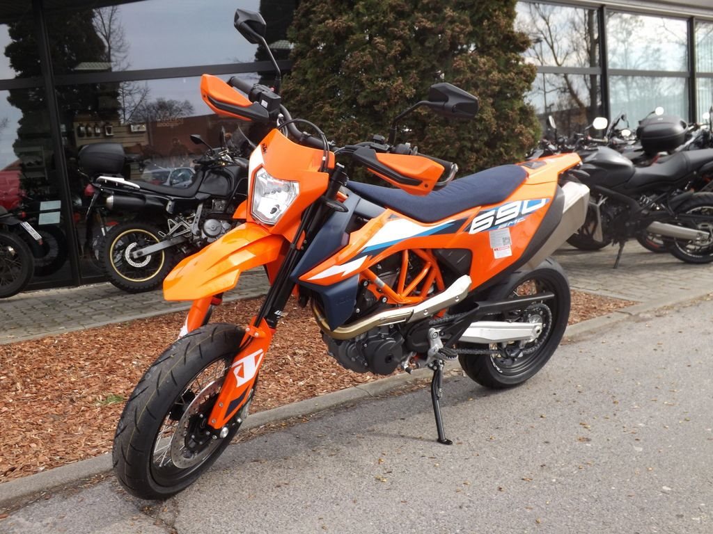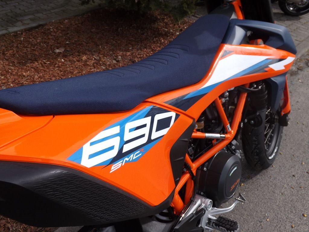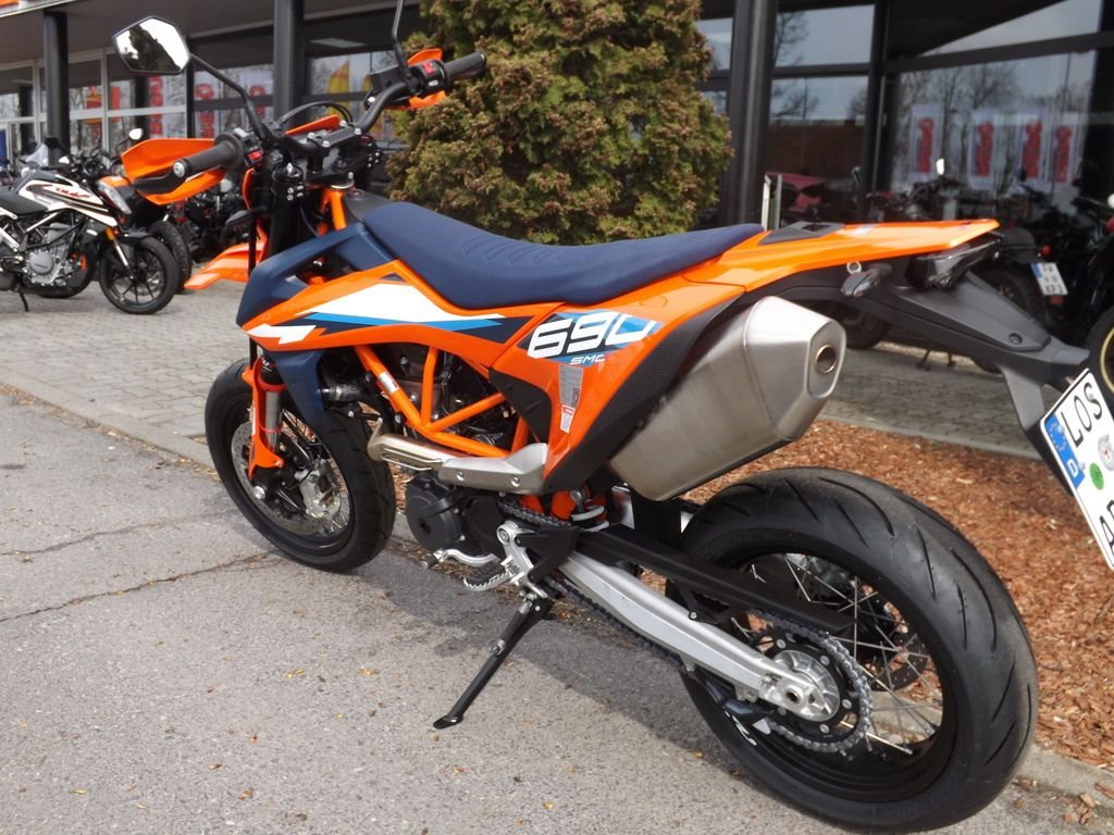Die KTM 690 SMC R legt die Messlatte im Supermoto-Segment mit ihrem leichten Fahrwerk, dem legendären LC4-Motor mit 690 cm und ihrem ausgeklügelten Elektronikpaket noch einmal höher. Egal, ob du auf Bergstraßen oder deiner Lieblingsstrecke dicke schwarze Striche auf den Boden zauberst - du wirst mit einem fetten Grinsen und Adrenalin in deinen Adern in die Zukunft driften. Ihr Handling wird von der neuesten, voll einstellbaren WP APEX-Federung verbessert, damit du dich nur mehr auf die Straße vor dir konzentrieren und den Gasgriff voll herumdrehen musst.