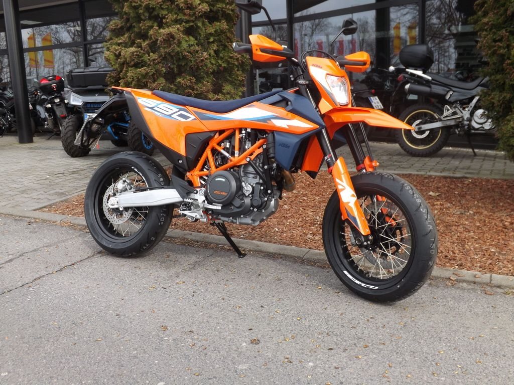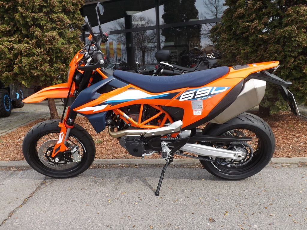 Die KTM 690 SMC R legt die Messlatte im Supermoto-Segment mit ihrem leichten Fahrwerk, dem legendären LC4-Motor mit 690 cm und ihrem ausgeklügelten Elektronikpaket noch einmal höher. Egal, ob du auf Bergstraßen oder deiner Lieblingsstrecke dicke schwarze Striche auf den Boden zauberst - du wirst mit einem fetten Grinsen und Adrenalin in deinen Adern in die Zukunft driften. Ihr Handling wird von der neuesten, voll einstellbaren WP APEX-Federung verbessert, damit du dich nur mehr auf die Straße vor dir konzentrieren und den Gasgriff voll herumdrehen musst.