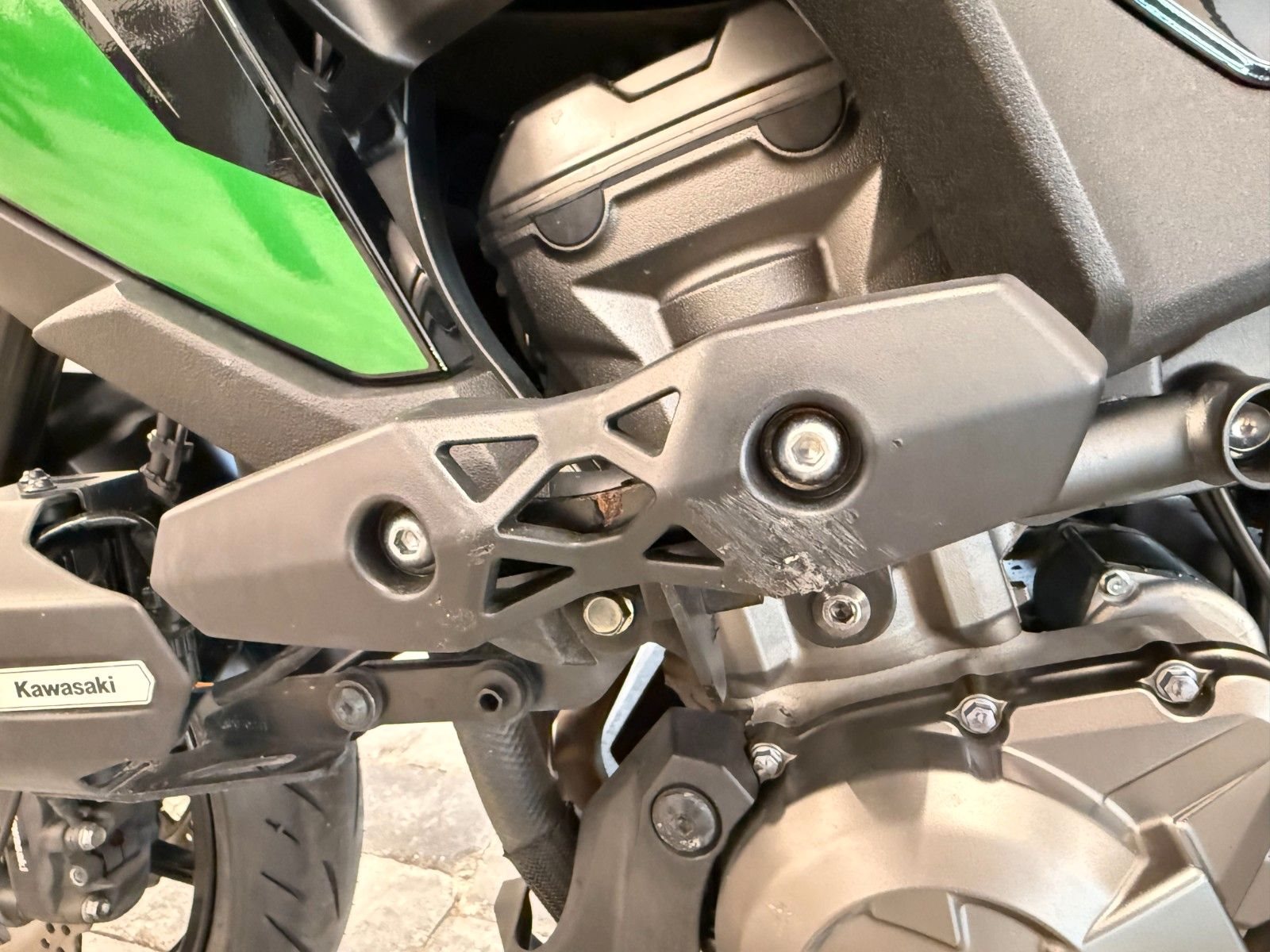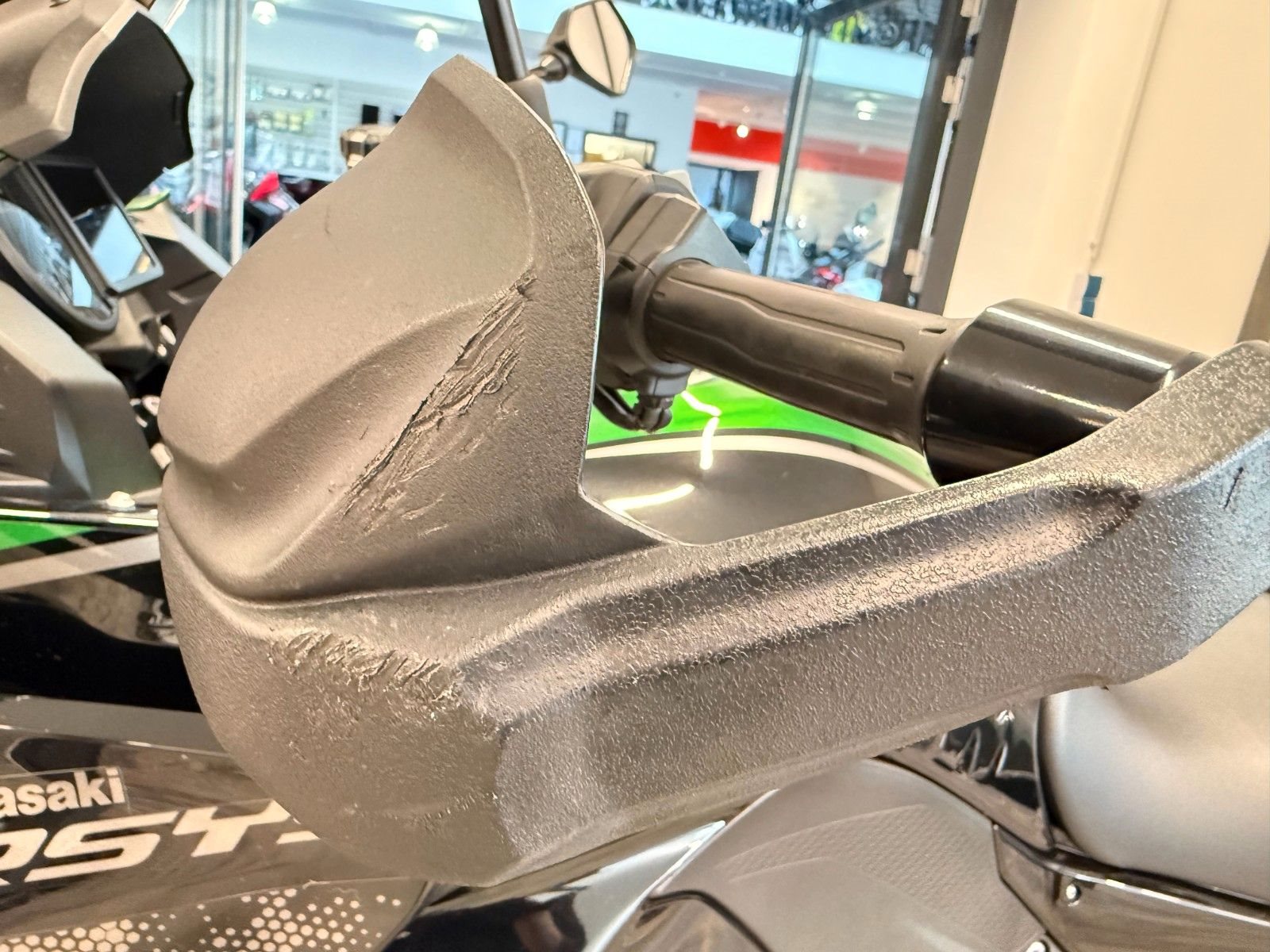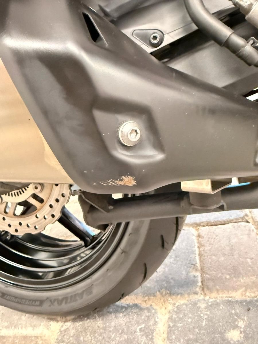 - Kratzer durch Umfaller links + rechts (Zündungsdeckel, Schutzbügel links, Handschützer links, Abdeckung Endschalldämpfer)