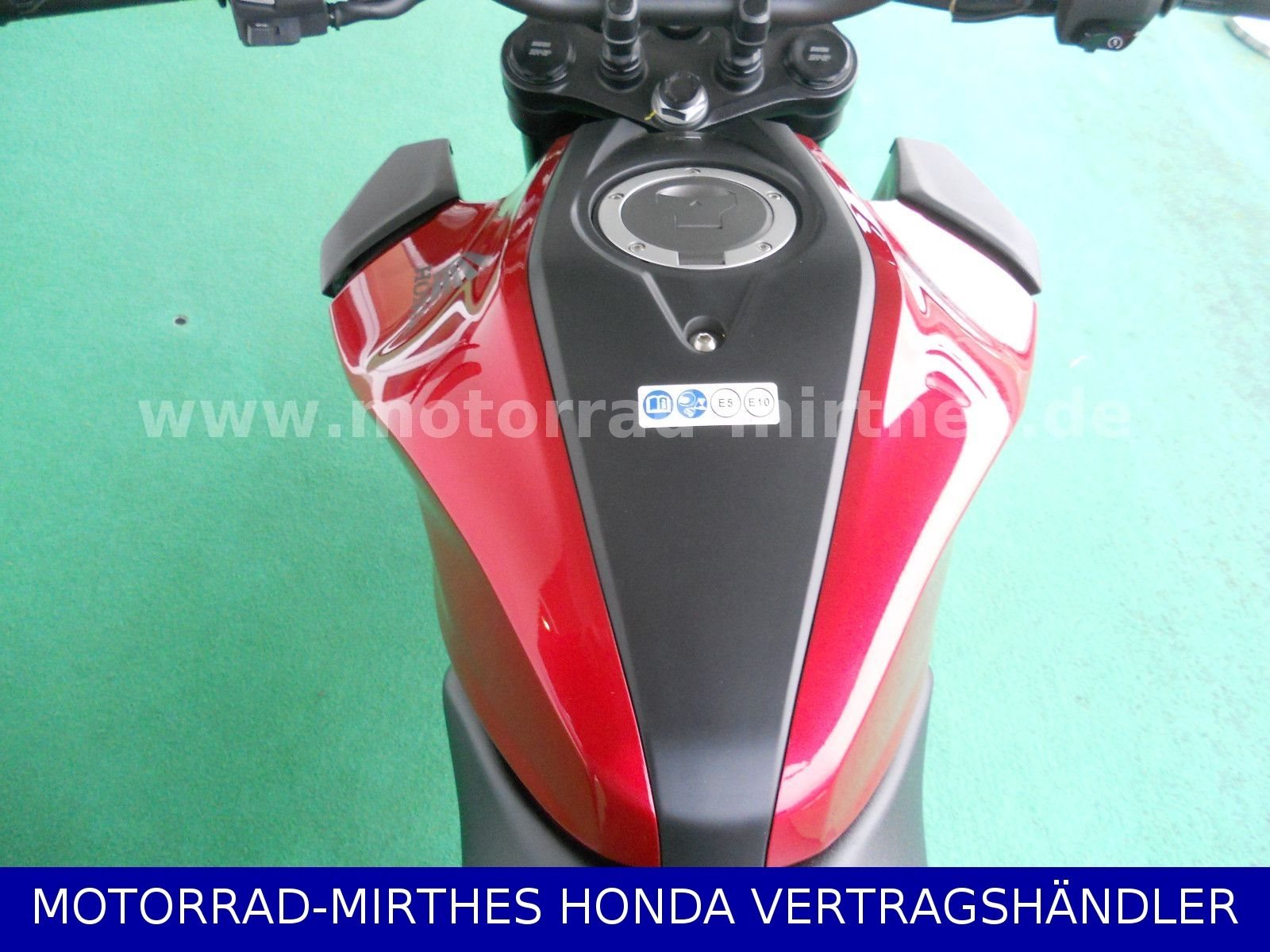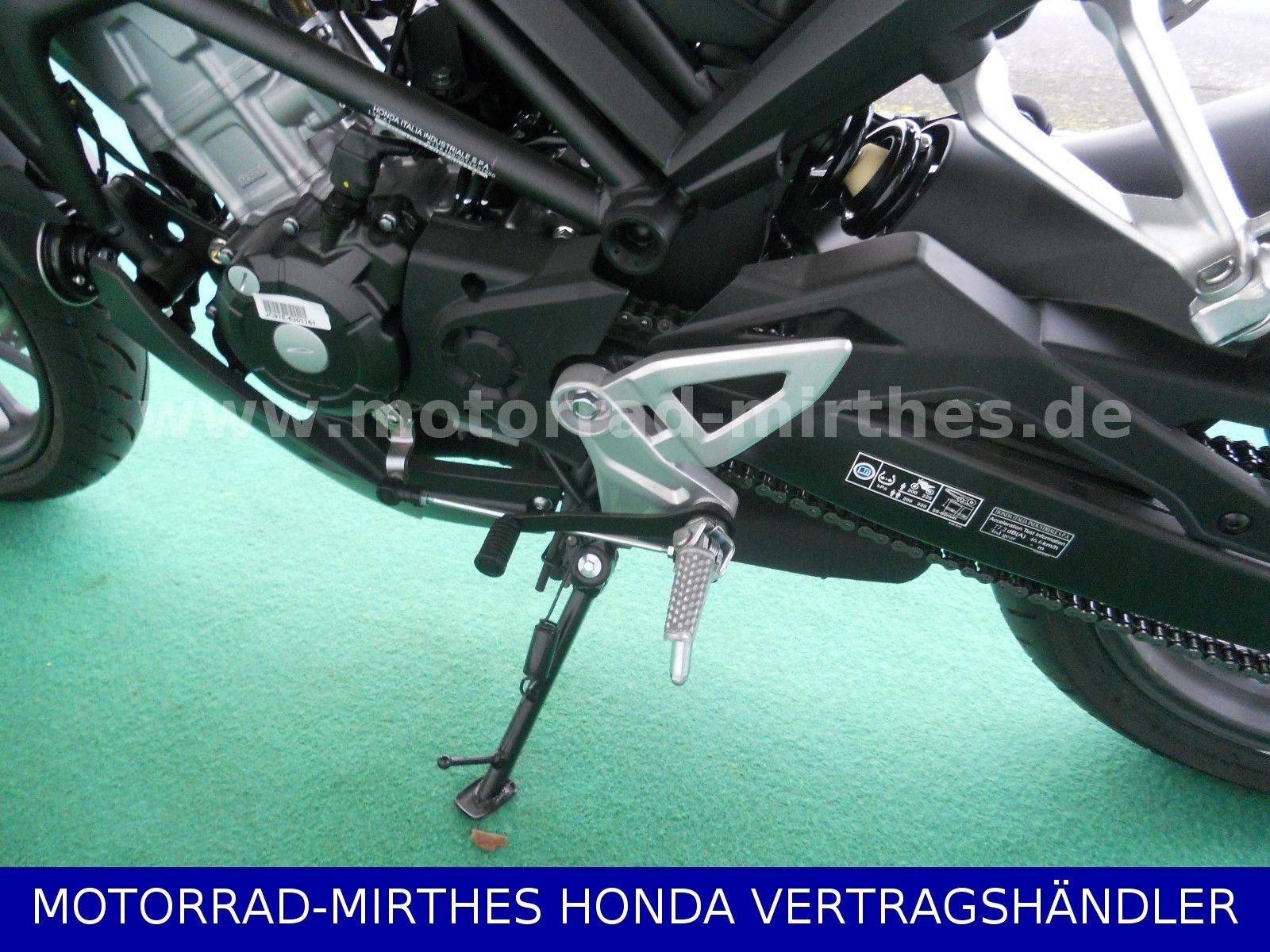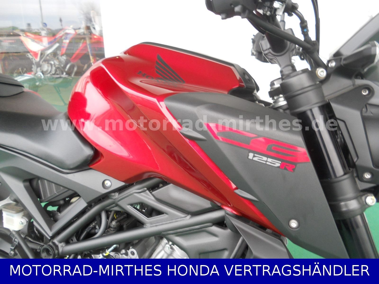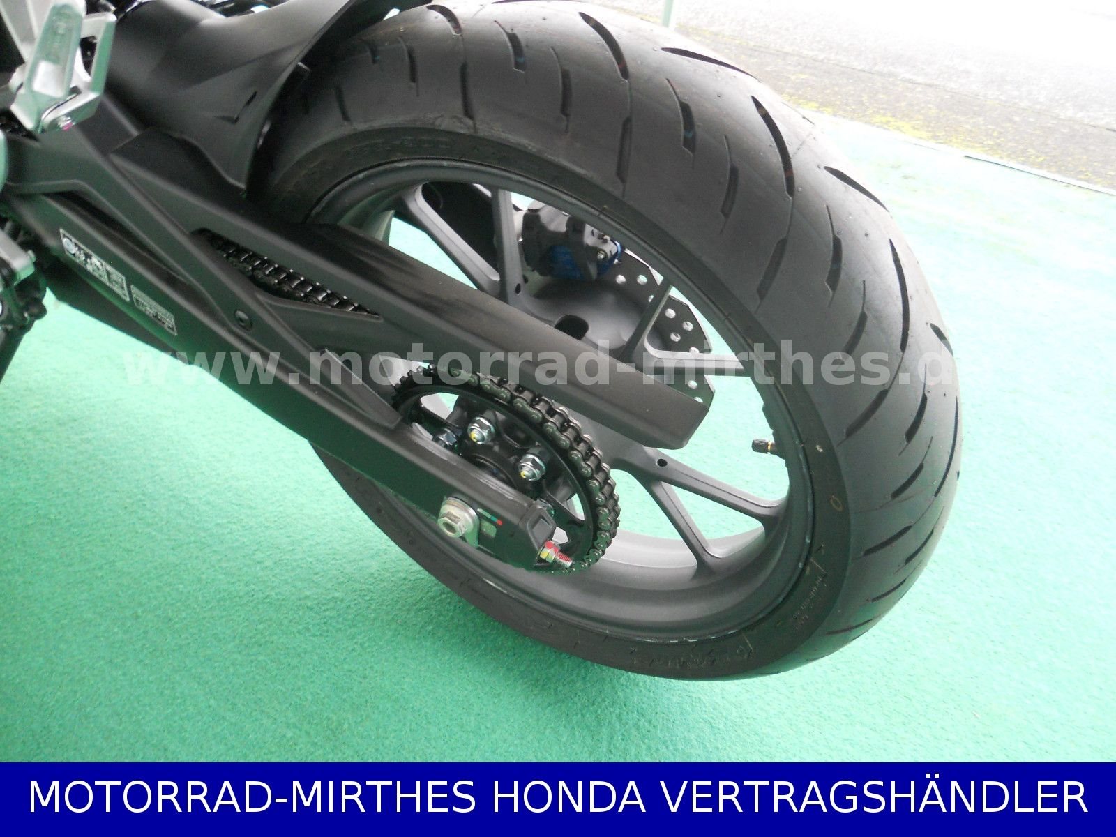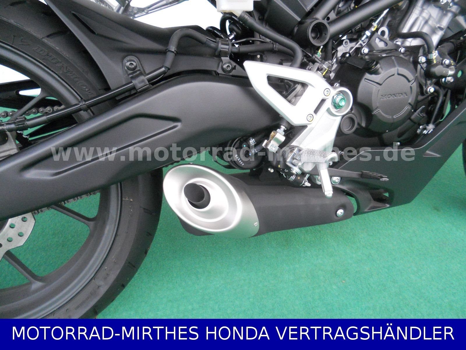 • Die CB125R setzt voll auf Minimalismus und bringt von Fahrt zu Fahrt mehr Fahrspaß. Dank der kompakten Größe ist das Bike leicht zu handhaben und die von den größeren Modellen übernommenen Merkmale sorgen für einen perfekten Einstieg in die Welt richtiger Motorräder. Der neuartige DOHC-Einzylindermotor mit 4 Ventilen liefert zusätzlich eine um 1,2 kW höhere Spitzenleistung und ein um 1.6 Nm höheres maximales Drehmoment durch ein perfekt abgestimmtes Sechsganggetriebe. Passend zum leistungsstärkeren Motor kommt das Motorrad mit Showa SFF-BP USD-Frontgabel (41 mm), die sich sonst nur bei größeren Bikes findet und für präzise Kontrolle und Lenkung sorgt. Hinzu kommen Reifen in voller Größe und eine radial montierte Vorderrad-Bremszange mit -ABS-Steuerung über eine Verzögerungs-Messeinheit.