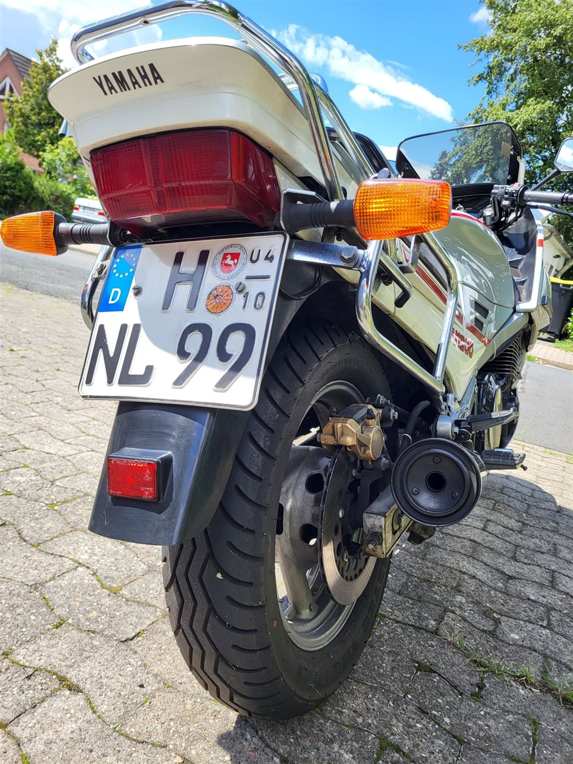 Ich habe meine Yamaha 1989 bei einem Yamaha-Händler mit Original-Yamaha-Koffern gekauft und nur in den ersten Jahren regelmäßig und nur im Sommer gefahren. Ich habe sie gepflegt und regelmäßig durch Yamaha-Vertragswerkstätten warten und reparieren lassen. Aus gesundheitlichen Gründen konnte ich in den letzten Jahren das Motorrad leider nicht mehr fahren und es wurde nach der letzten umfangreichen Reparatur in meiner Yamaha-Vertragswerkstatt (- u.a. Kupplung, Zündkerzen, Öl, Bremsflüssigkeit neu) Wartung und HU am 20.10.2023 in meiner Garage mit Langzeitschutz (- Benzin Shell V-Power) eingelagert, gelegentlich zuletzt am 29.07.2025 vor dem Verkauf gestartet - leider konnte ich wegen andauernder Krankheit keine Probefahrt mehr machen. Mängel sind altersbedingt und durch nur 1 Sturz in Stadtverkehr auf die linke Seite vorhanden (1996) : Kratzer am Tank am Lenker, am vorderen Schutzblech, an der Verkleidung, am Verkleidungsteil unter dem Motor und an der Heckverkleidung neben dem Haltegriff (- alles an linker Seite, s. Fotos !).