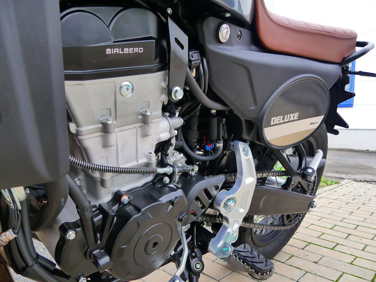 Ausgestattet mit einem 460cc DOHC-Einzylindermotor, entwickelt und produziert von Motori Minarelli, überzeugt die Caballero Scrambler 500 durch ihr einzigartiges, leichtes und minimalistisches Design, das maximale Freiheit auf jedem Untergrund ermöglicht. Agil und spritzig auf der Straße, kraftvoll und reaktionsschnell im Gelände - mit der neuen Caballero Scrambler kennt der Fahrspaß keine Grenzen.