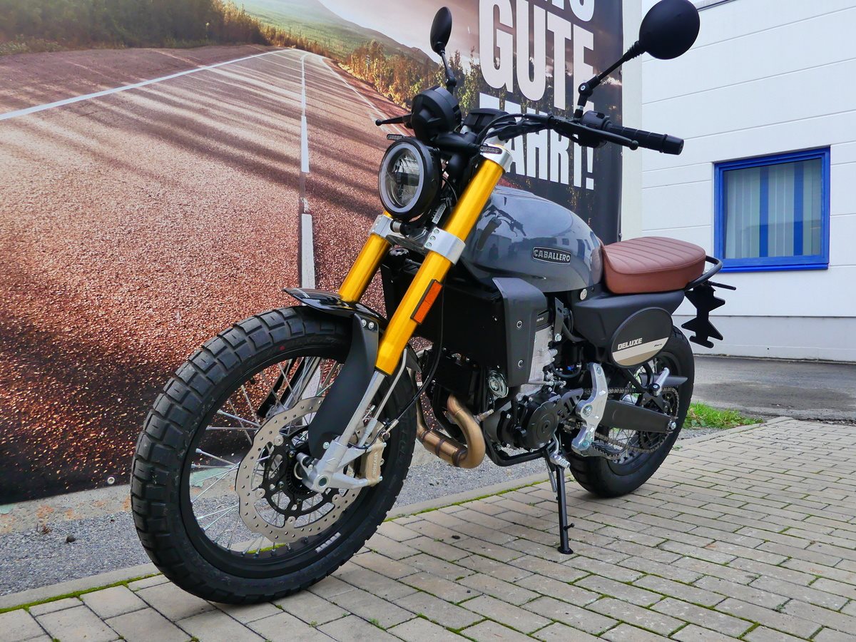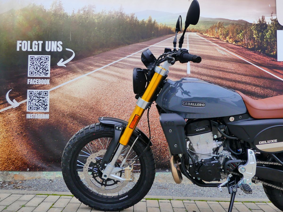Ausgestattet mit einem 460cc DOHC-Einzylindermotor, entwickelt und produziert von Motori Minarelli, überzeugt die Caballero Scrambler 500 durch ihr einzigartiges, leichtes und minimalistisches Design, das maximale Freiheit auf jedem Untergrund ermöglicht. Agil und spritzig auf der Straße, kraftvoll und reaktionsschnell im Gelände - mit der neuen Caballero Scrambler kennt der Fahrspaß keine Grenzen.