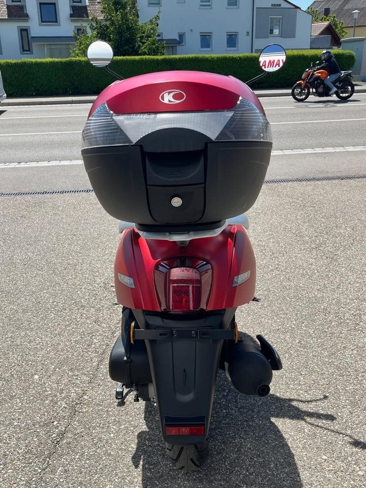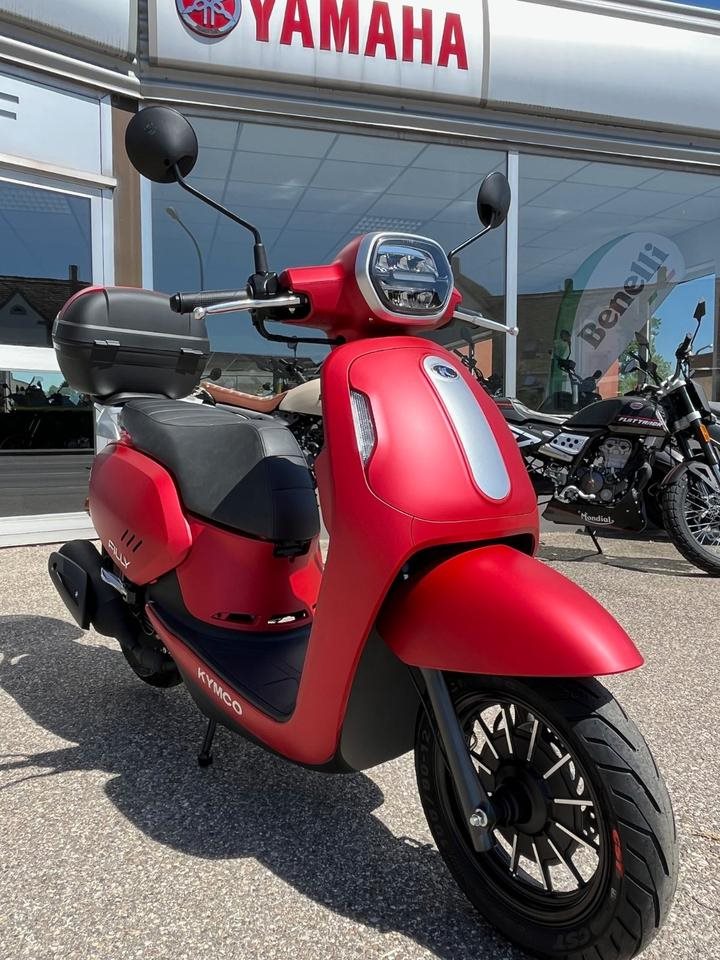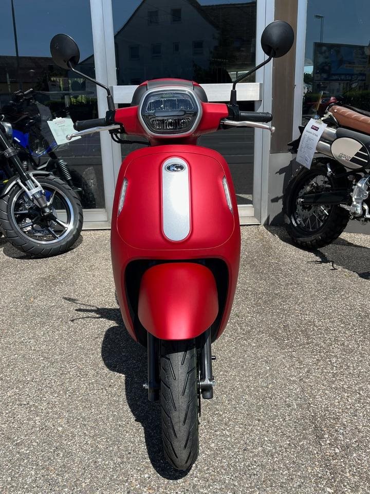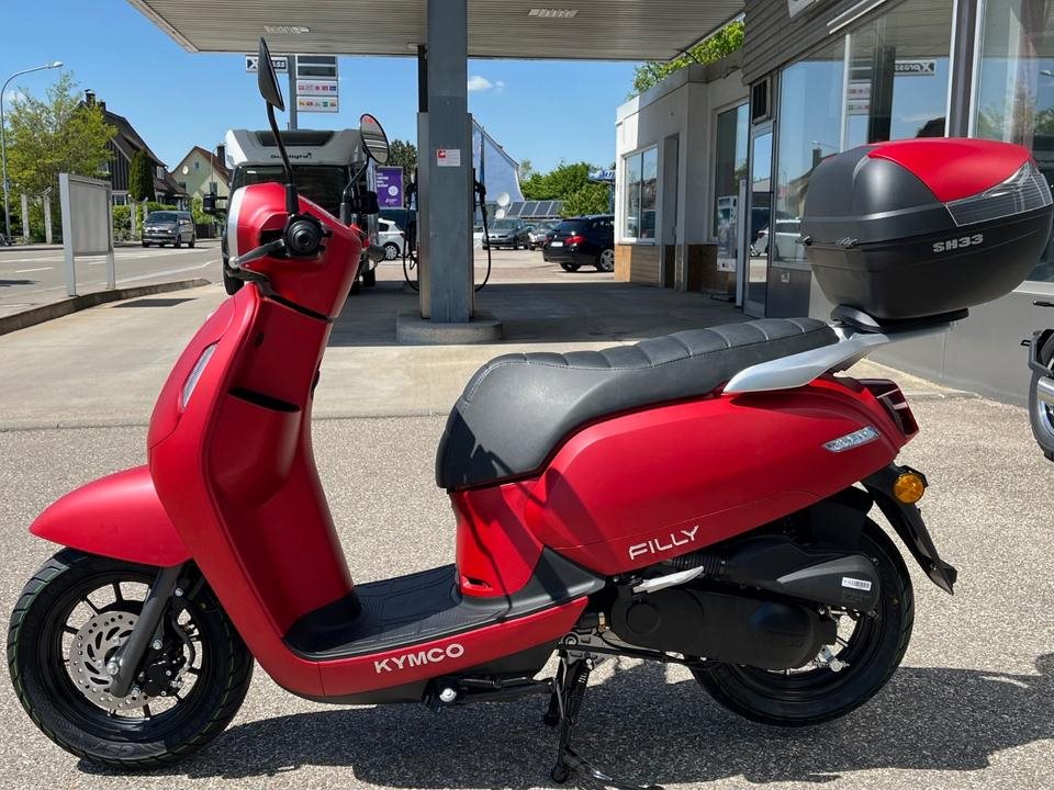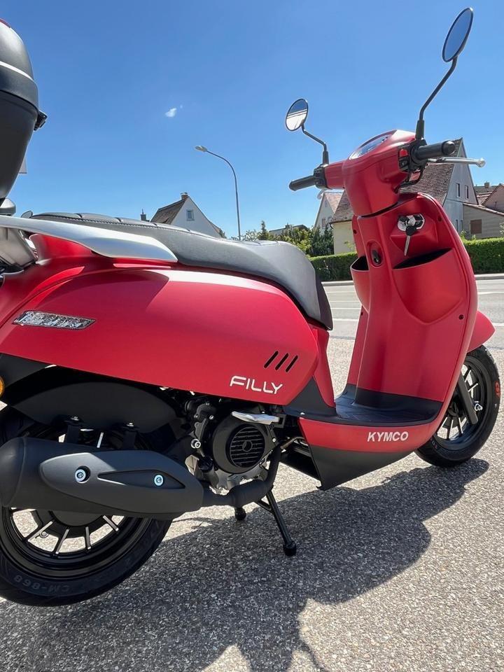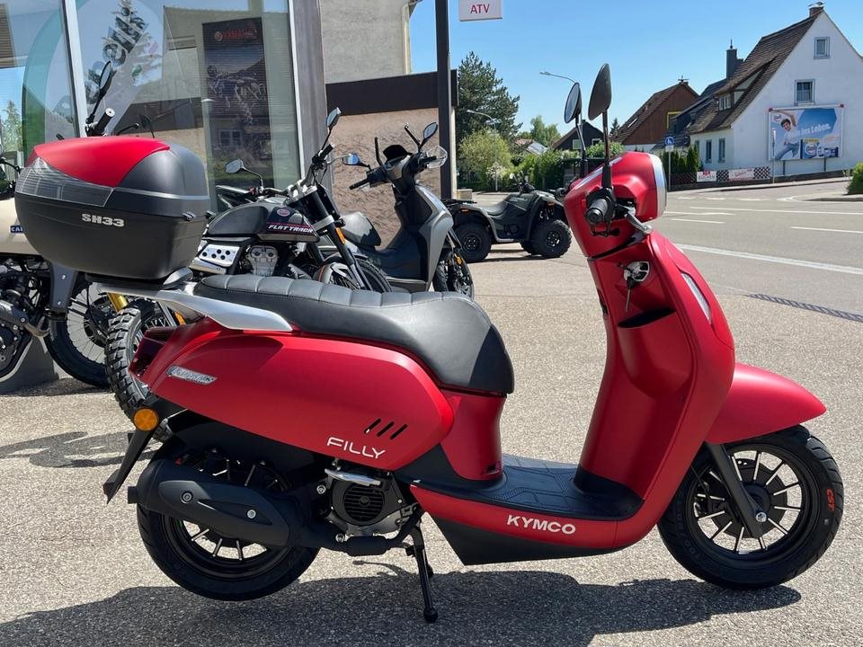 Neufahrzeug vom Vertragshändler mit Werksgarantie, die bei allen Vertragshändlern gültig ist. Wir liefern Ihr Motorrad für 79 € bis 50km & 149 € bis 100km (einfache Fahrtstrecke). Über 100 km innerhalb Deutschlandes, ausgenommen der Inseln, für 245€. Barzahlungspreis: 1.999 € zzgl. 200 € Nebenkosten Sonderfinanzierung auch ohne Anzahlung möglich. Für mehr Informationen oder einer individuellen Beratung kommen Sie gerne persönlich bei uns vorbei oder besuchen Sie uns im Internet. Scherzer GmbH Crailsheimer Str. 14 91555 Feuchtwangen Tel: 09852/67660 Vintage-Flair + urbaner Minimalismus. Der KYMCO FILLY 50i bringt klassischen Retro-Charme und modernen Minimalismus perfekt zusammen. Der Roller war bereits vor einigen Jahren ein beliebter Begleiter für den urbanen Asphaltdschungel und nun kehrt der FILLY mit aktualisierter Optik und modernster Technik zurück. Mit seinem kompakten 50-ccm-Einzylindermotor ist der FILLY 50i der ideale Begleiter für die Stadt. Der sparsame Motor mit elektronischer Einspritzung sorgt für leisen und effizienten Antrieb, der das tägliche Pendeln mühelos macht. Sein puristisches Design und die leichte Bauweise machen ihn besonders wendig, ideal für enge Straßen und schnelle Manöver im Stadtverkehr. Das aufgeräumte Display mit digitalen und analogen Anzeigen hält alle wichtigen Informationen gut sichtbar im Blick. Helle LED-Lichter erhöhen die Sicherheit bei Tag und Nacht, während der praktische Stauraum unter der Sitzbank Platz für Einkäufe und Alltagsgegenstände bietet. Das Topcase bietet zusätzlich flexiblen Stauraum. Ob für die kurze Strecke zum Café oder den Weg zur Arbeit der KYMCO FILLY 50i verbindet zeitlosen Stil mit moderner Funktionalität. Technische Daten Max. Leistung 2,4 kW (3,3 PS) bei 7000 U/min Leergewicht in kg 101 (fahrbereit) zul. Gesamtgewicht in kg 254 Abmessungen (L, H, B) in mm 1820, 1090-1125, 690 Sitzhöhe in mm 740 Tankinhalt in Liter 4,6 Bauart 1-Zyl, 4 Takt gebläsegekühlt 2 Ventile, Einspritzer Hubraum in ccm 50 Starter Elektro Kupplung Fliehkraftkupplung Getriebe stufenlose Variomatik Federung vorne hydraulische Teleskopgabel Federung hinten Triebsatzschwinge, hydr. gedämpft (2 Federbeine) Bremse vorne 1 Scheibenbremse Bremse hinten Trommel Reifen vorne 100/80-12 Reifen hinten 120/70-12 Abgaswerte EURO 5 / Kraftstoffverbrauch (l/100 km) Ø 2,0l; CO2 Emissionen 47g/km Irrtümer, Änderungen und Zwischenverkauf vorbehalten!