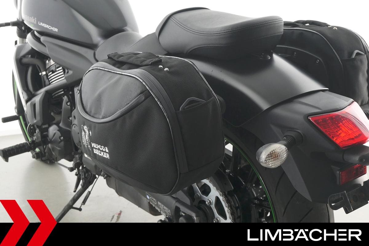 Eine Kawasaki Vulcan S aus zweiter Hand in gepflegtem Zustand u.a. mit Hepco&Becker-Packtaschen sowie Montageheber-Aufnahmen.