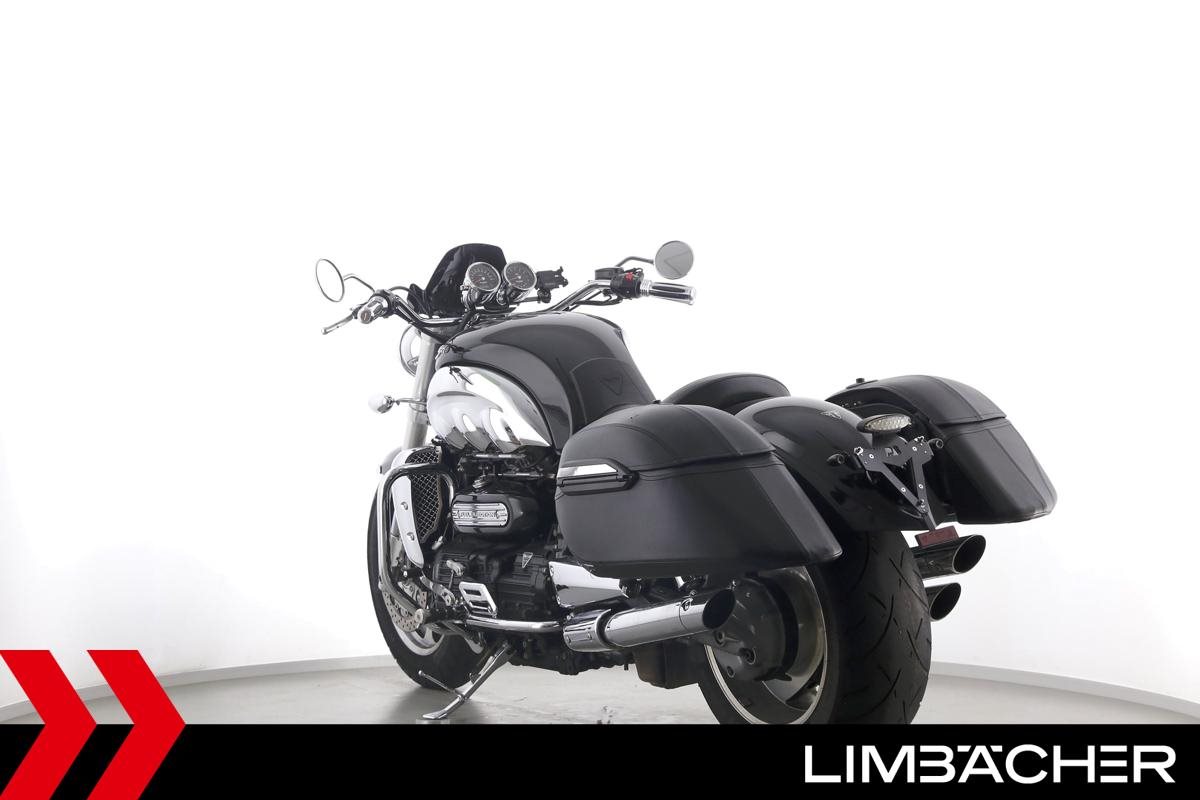 Eine Triumph Rocket III in gepflegtem Zustand u.a. mit Sport-Auspuff sowie Hepco & Becker-Lederkoffer.