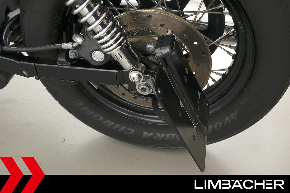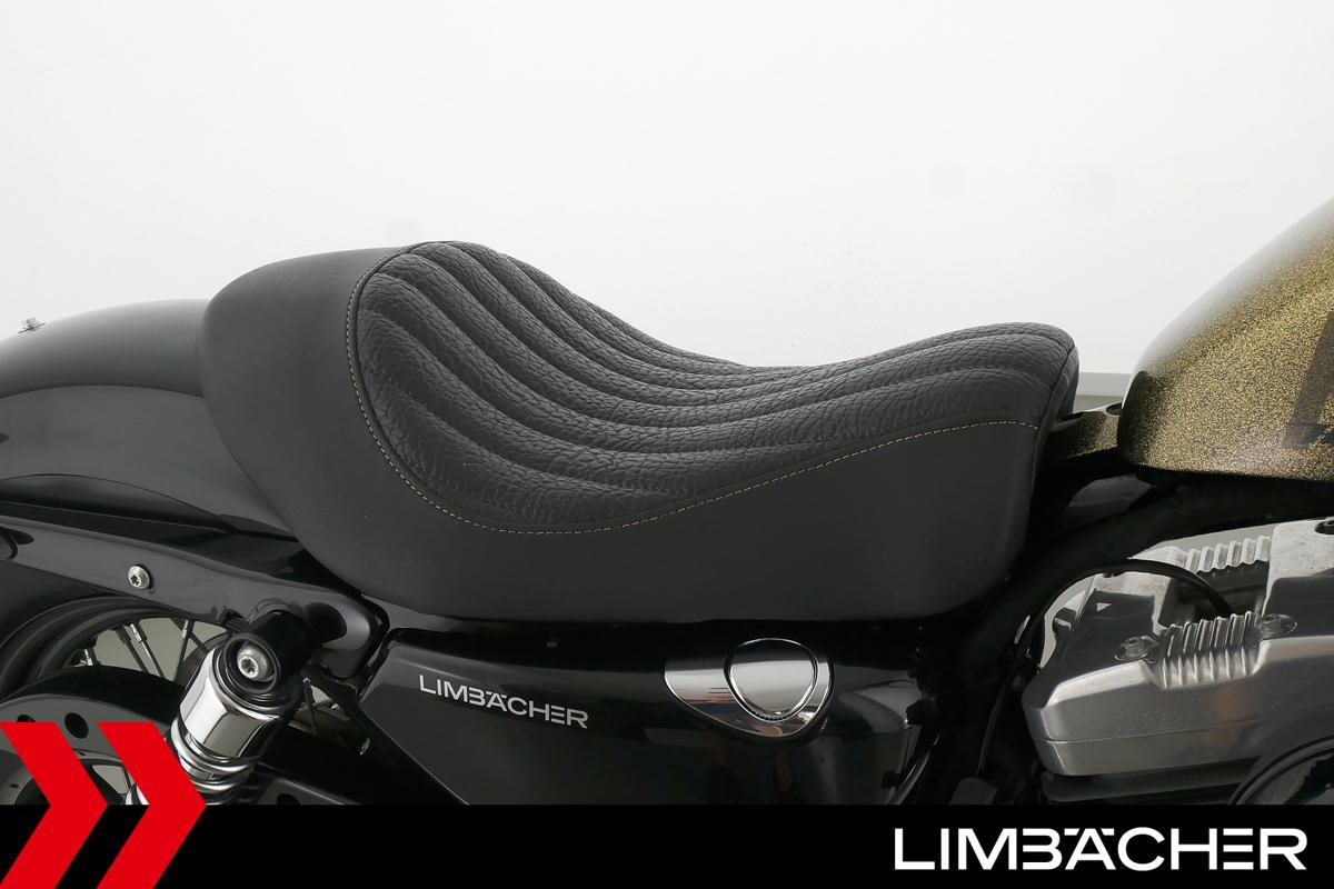 Eine Harley-Davidson Sportster XL 1200 X Forty Eight in gebrauchtem Zustand u.a. mit MJC-Endschalldämpfer sowie seitlichem Kennzeichenhalter.