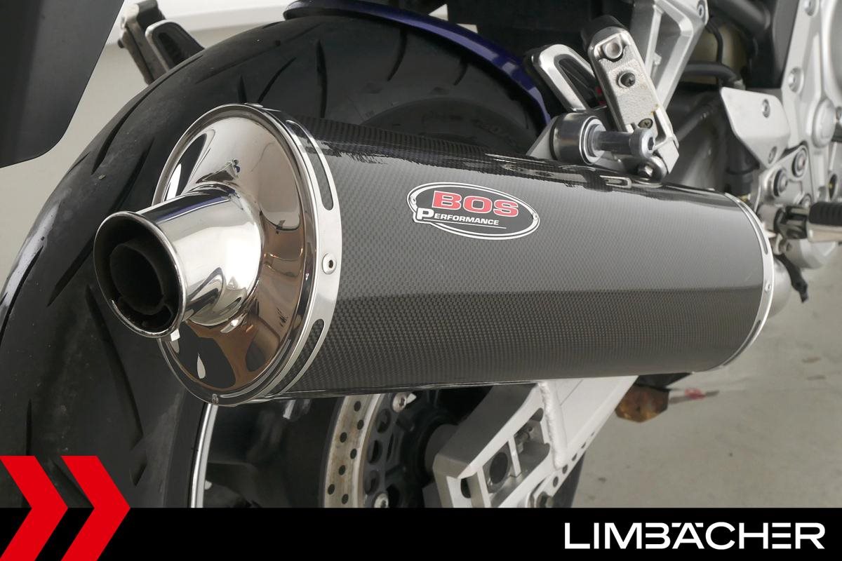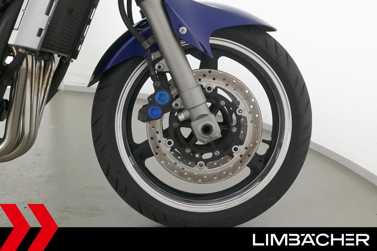 Eine Yamaha FZS 1000 Fazer aus zweiter Hand in gepflegtem Zustand u.a. mit BOS-Endschalldämpfer und Sturzpads.