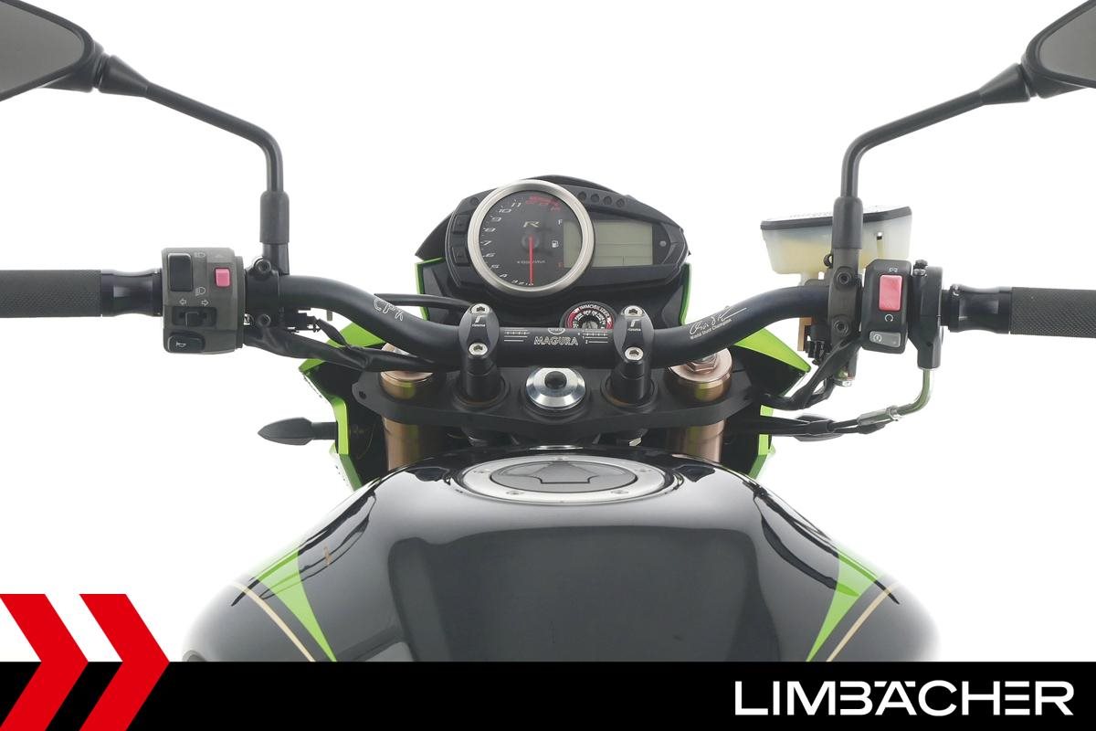 Eine Kawasaki Z 750 R in gepflegtem Zustand u.a. mit Tieferlegung sowie LeoVince-Carbon-Endschalldämpfer.