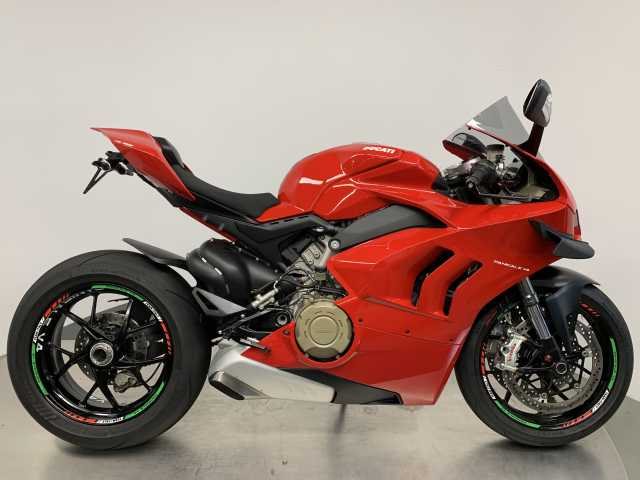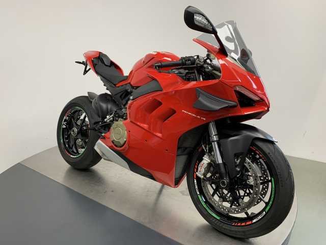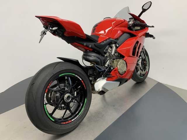 Sehr schöne und scheckheftgepflegte Ducati Panigale V4 mit kurzem Kennzeichenhalter, Ducati Performance-Blinker, Bremshebelschutz und Rizoma Tankdeckel.
