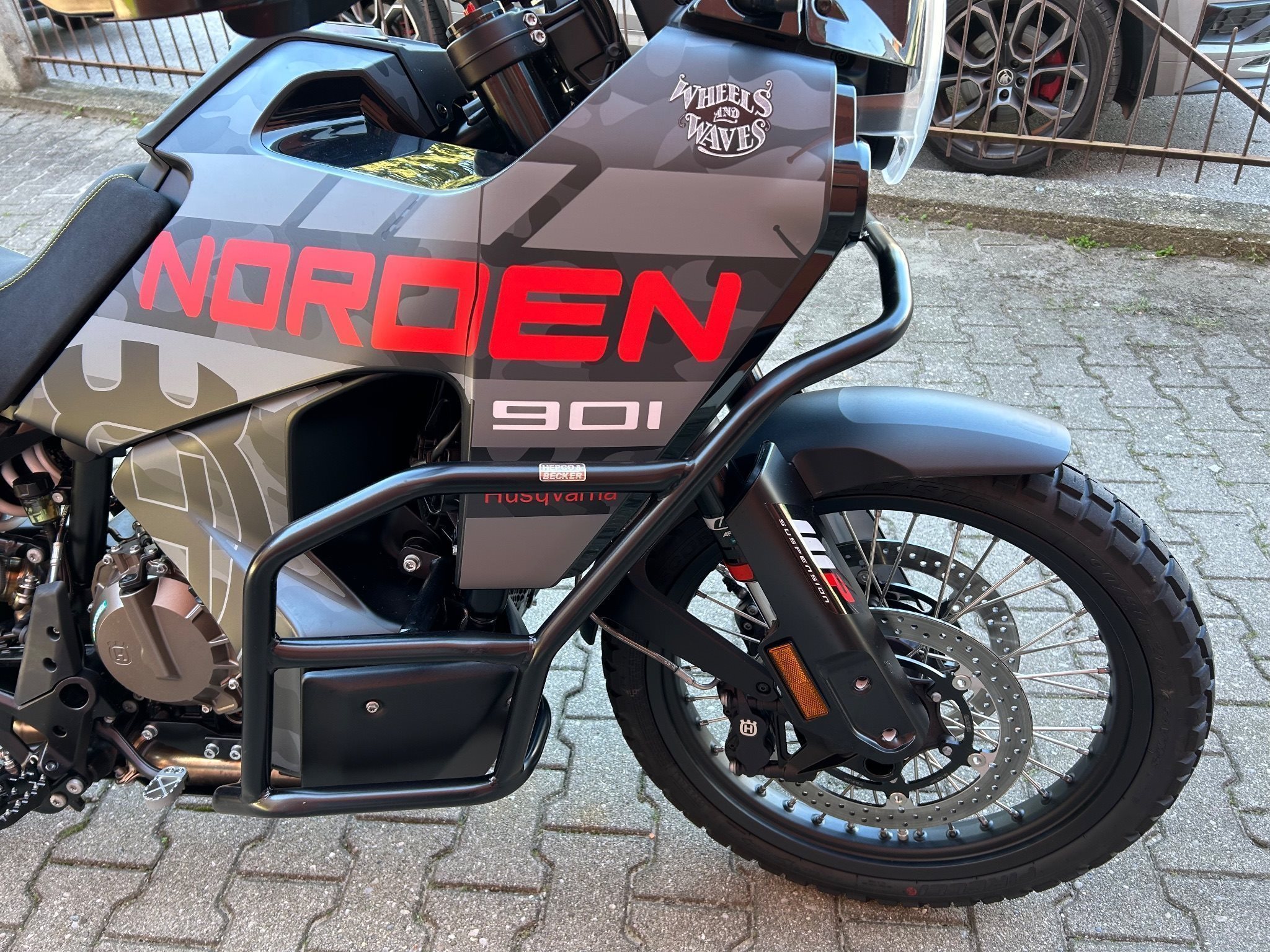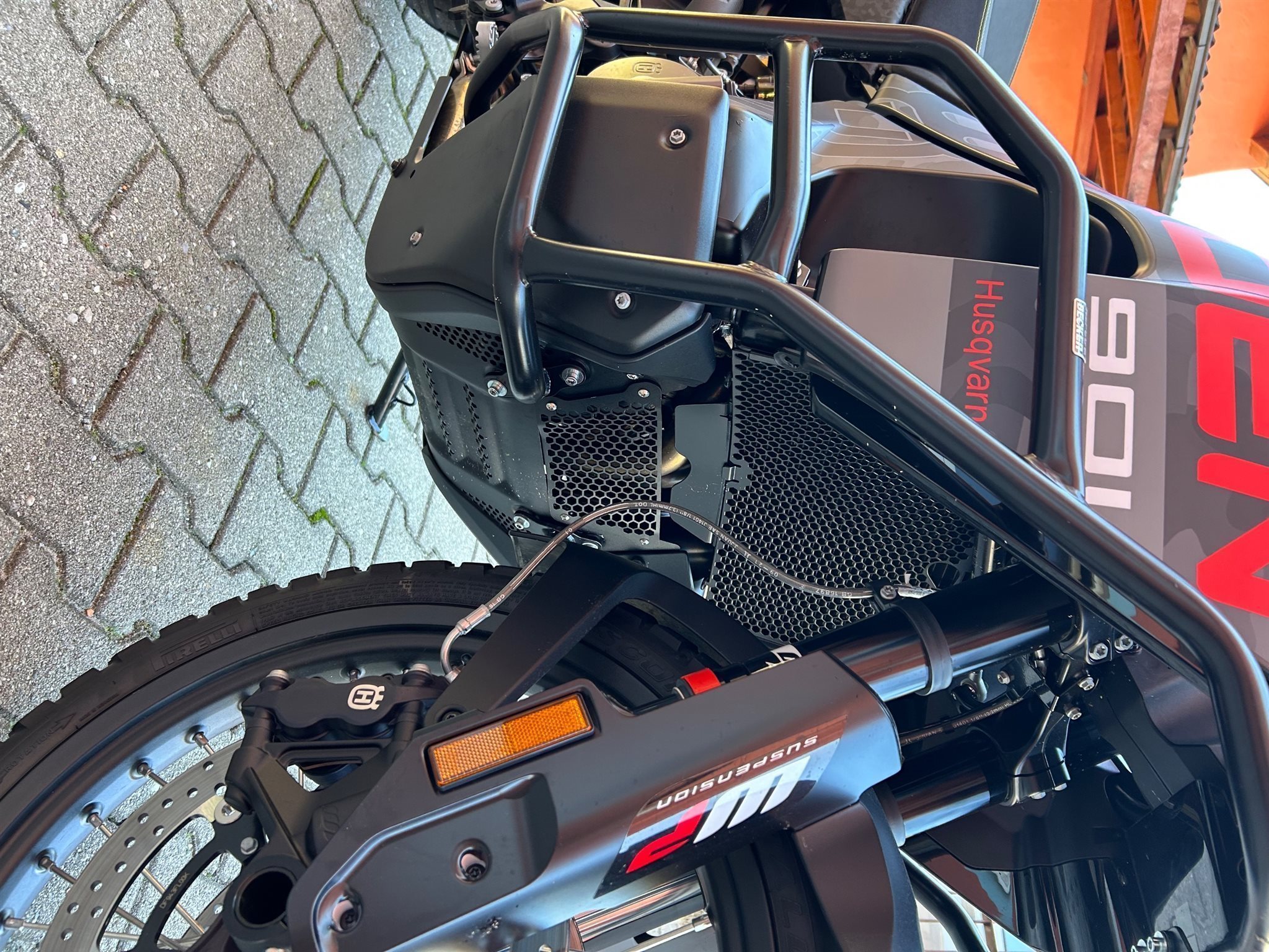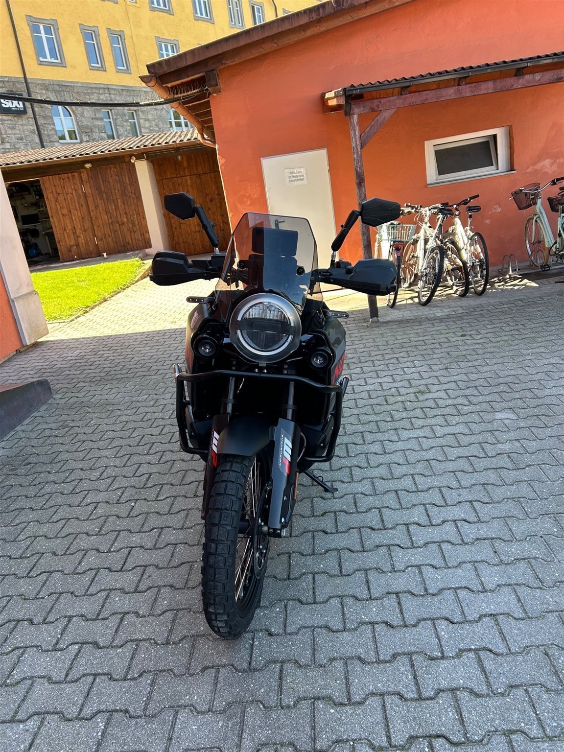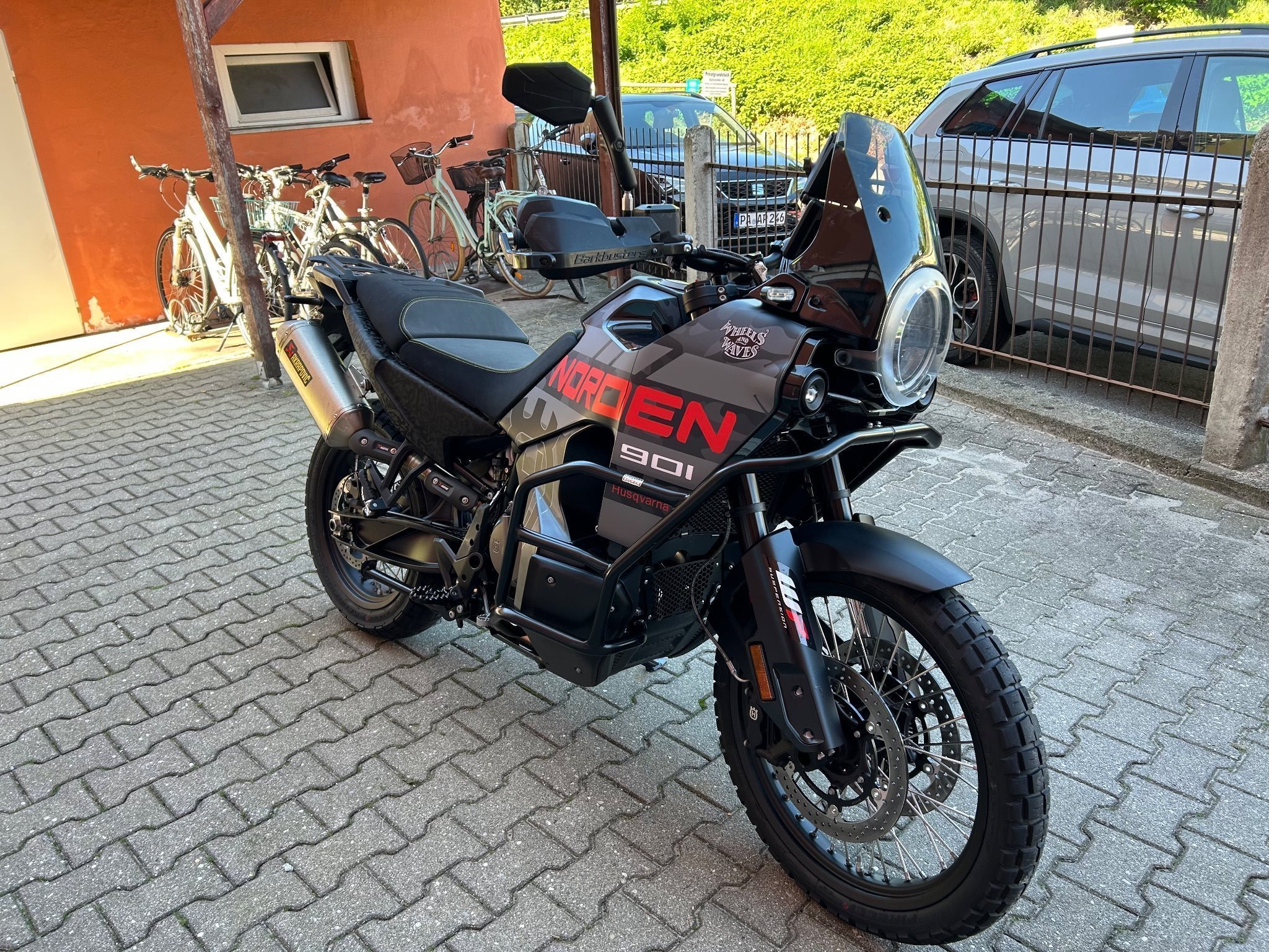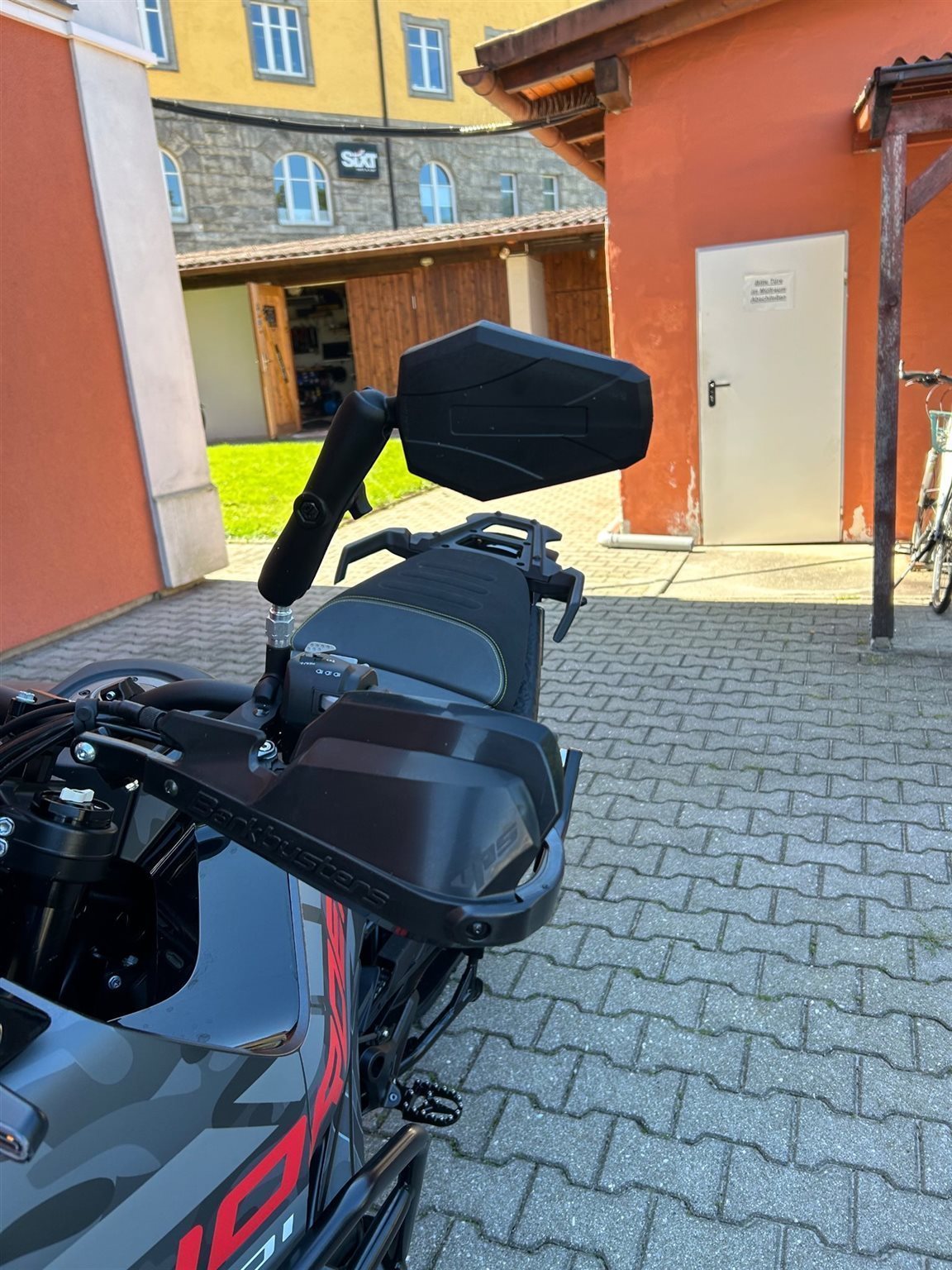 Zusätzlich dazu sind noch Hepco Becker Crash Bars, Barkbuster (Alu schwarz gepulvert), Spiegel DoubleTake Adventure,