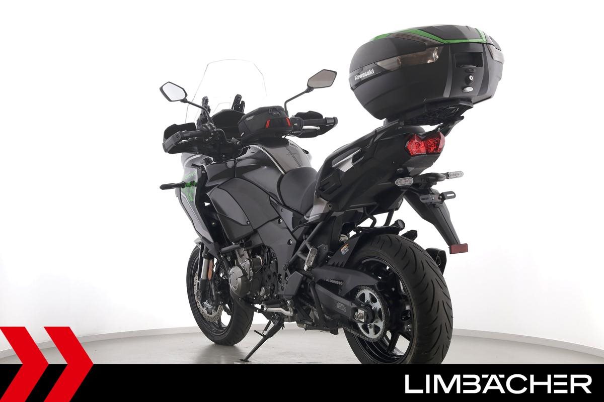 Eine Kawasaki Versys 1000 S aus erster Hand in sehr gepflegtem Zustand u.a. mit Kawasaki-Topcase und Tankrucksack.
