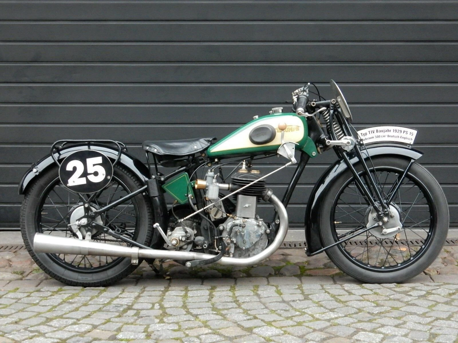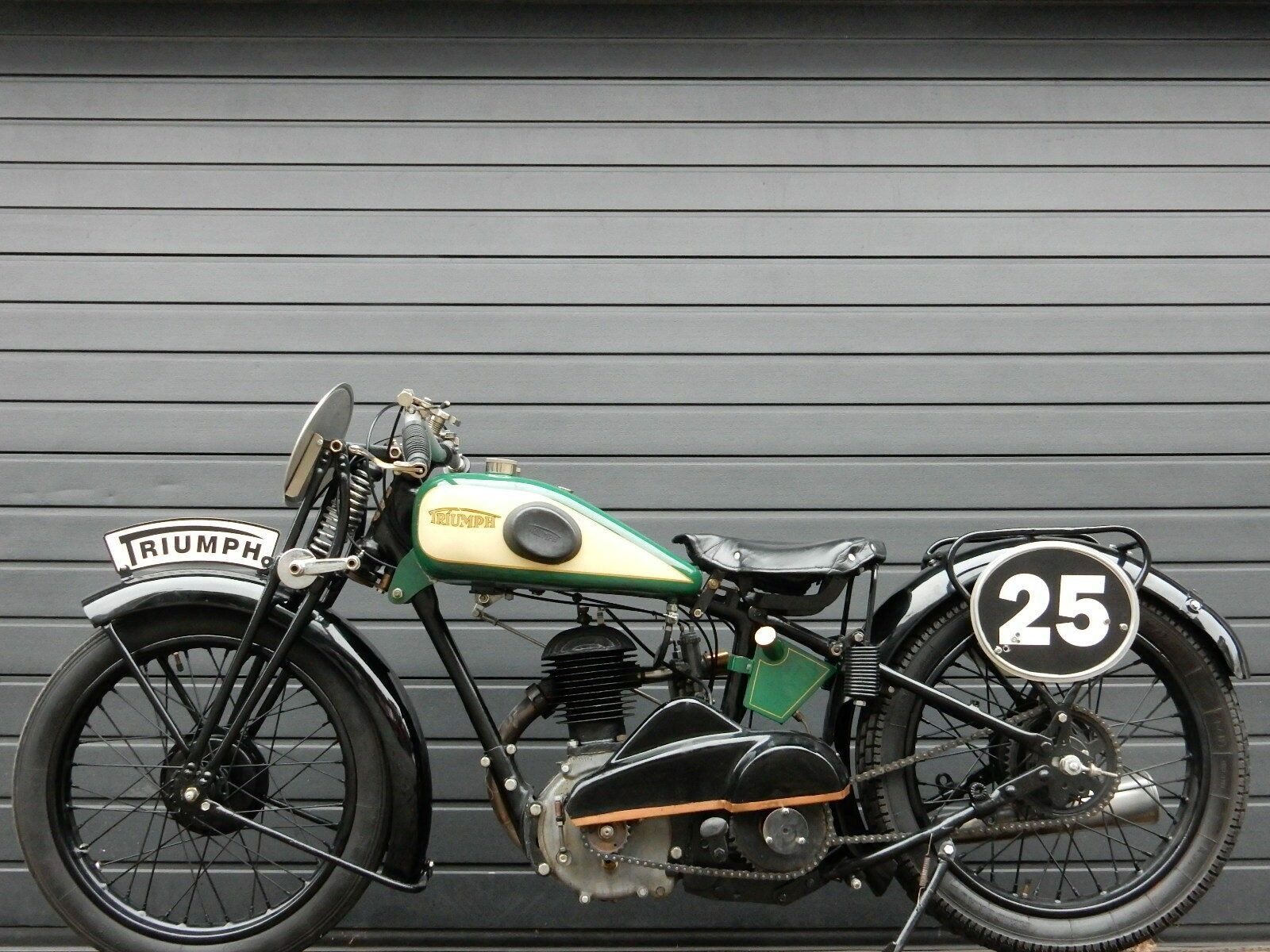 Ich biete eine einzigartige Triumph, Baujahr 1929. Das Motorrad hat den seltenen 498 ccm 4-Takt-Motor mit 15 PS. Sie läuft und ist dabei ordentlich laut. Sie wurde zuletzt für Bergrennen benutzt.