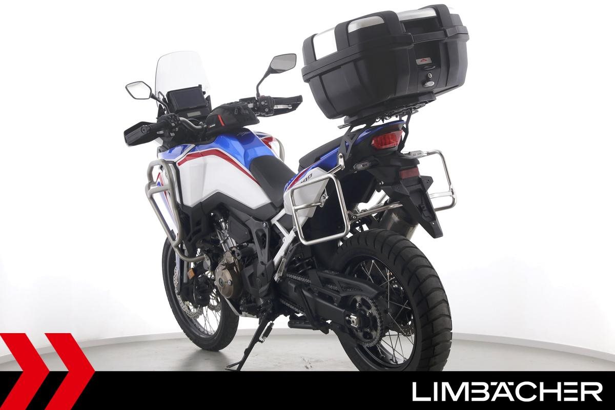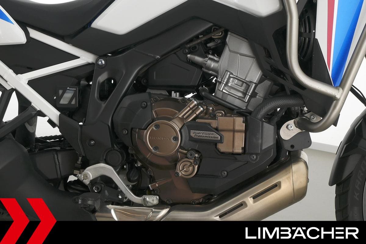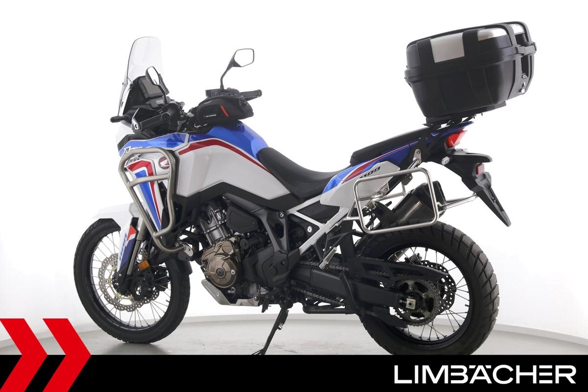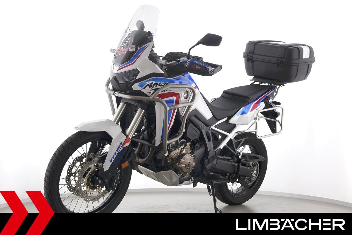 Eine scheckheftgepflegte Honda CRF 1100 L Africa Twin DCT aus zweiter Hand in gepflegtem Zustand u.a. mit Doppelkupplungsautomatik DCT sowie Givi-Topcase groß.