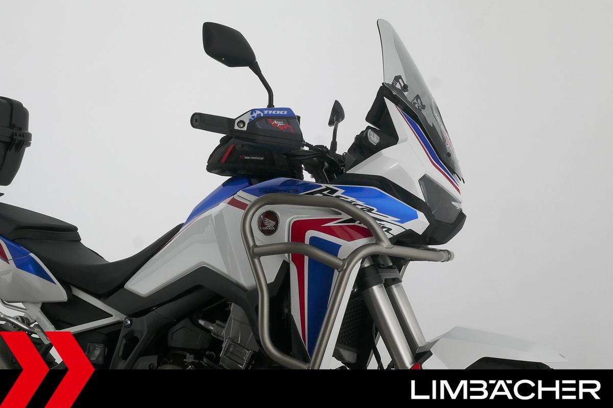 Eine scheckheftgepflegte Honda CRF 1100 L Africa Twin DCT aus zweiter Hand in gepflegtem Zustand u.a. mit Doppelkupplungsautomatik DCT sowie Givi-Topcase groß.
