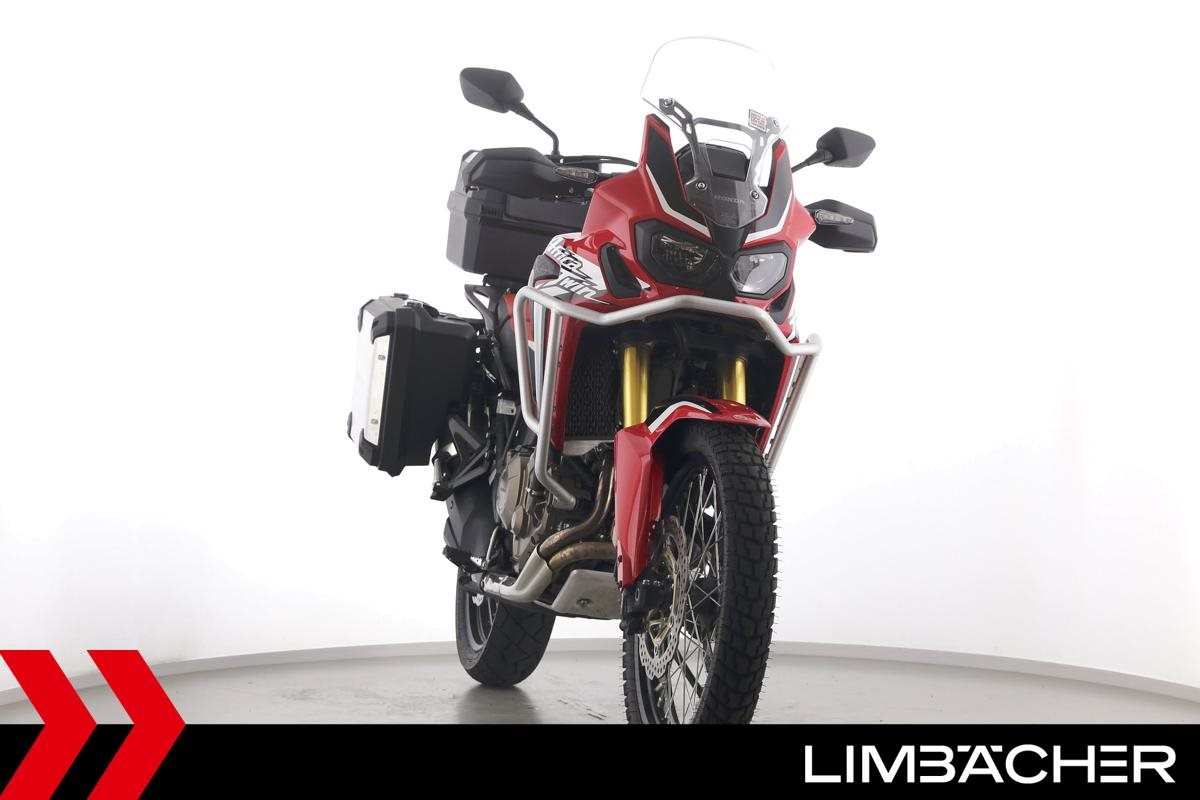 Eine Honda CRF 1000 L Africa Twin aus erster Hand in gepflegtem Zustand u.a. mit Honda-Koffersystem und Sturzbügel.