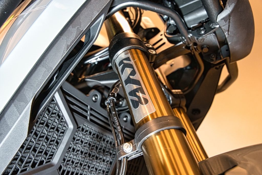 -Fahrwerk vorne: 41 mm, USD-Gabeln, Druckstufe und Dämpfung einstellbar