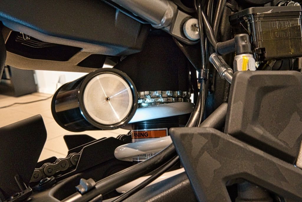 -Fahrwerk vorne: 41 mm, USD-Gabeln, Druckstufe und Dämpfung einstellbar