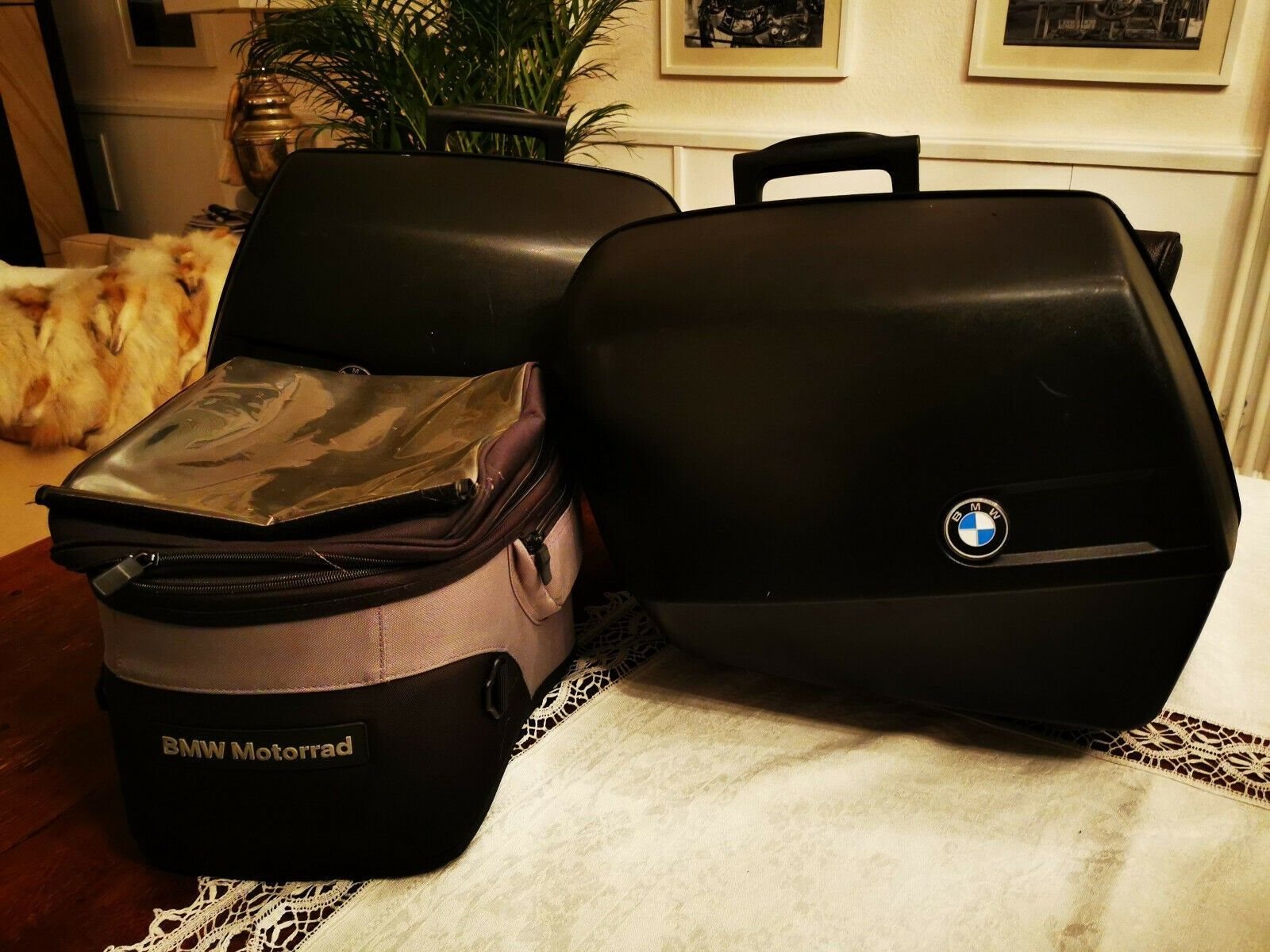 Dabei sind gleichschließende original BMW-Systemkoffer mit BMW-Innentaschen und ein original BMW-Tankrucksack. Reifenprofil noch sehr gut, Reifen schon älter.
