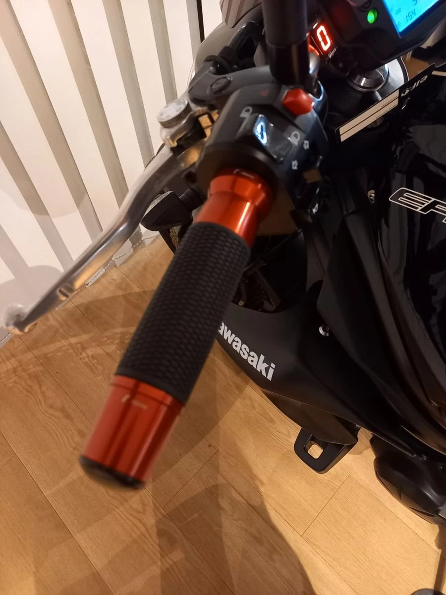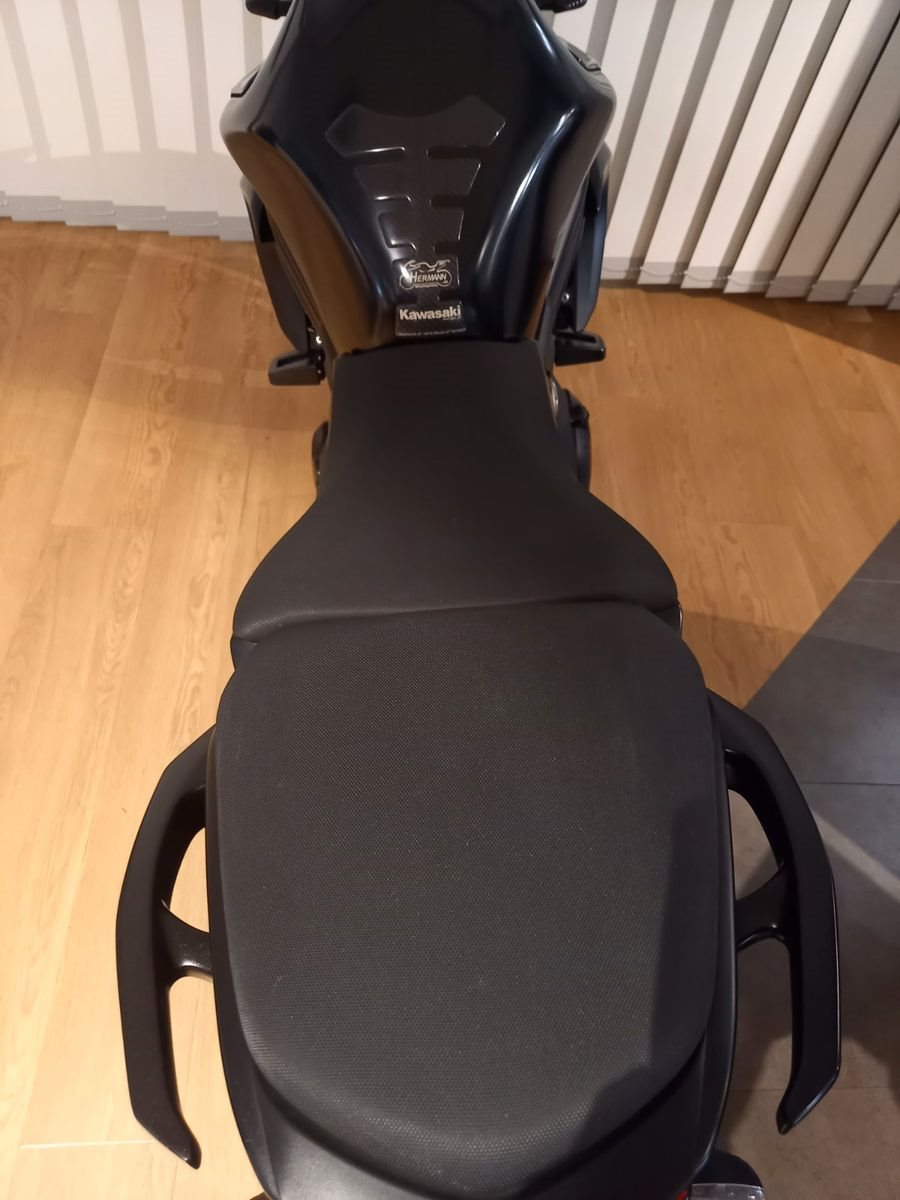 -Extras: Mini-Blinker, Rizoma-Lenkergriffe rot eloxiert, MRA-Flyscreen, Sturzpads (orig. Zubehör Kawasaki), Aufnahmen f. Montageständer an Hinterradschwinge, kurzer Kennzeichenhalter
