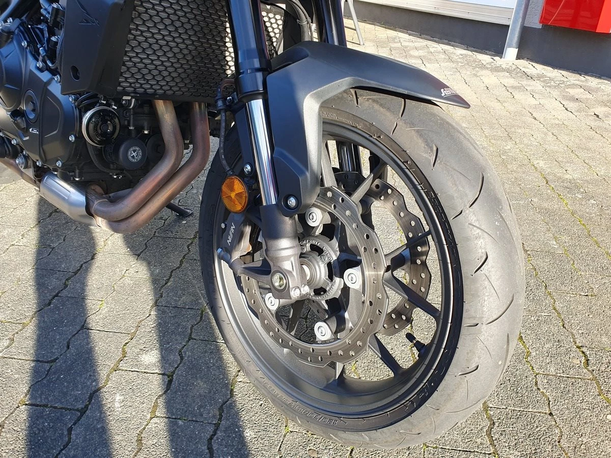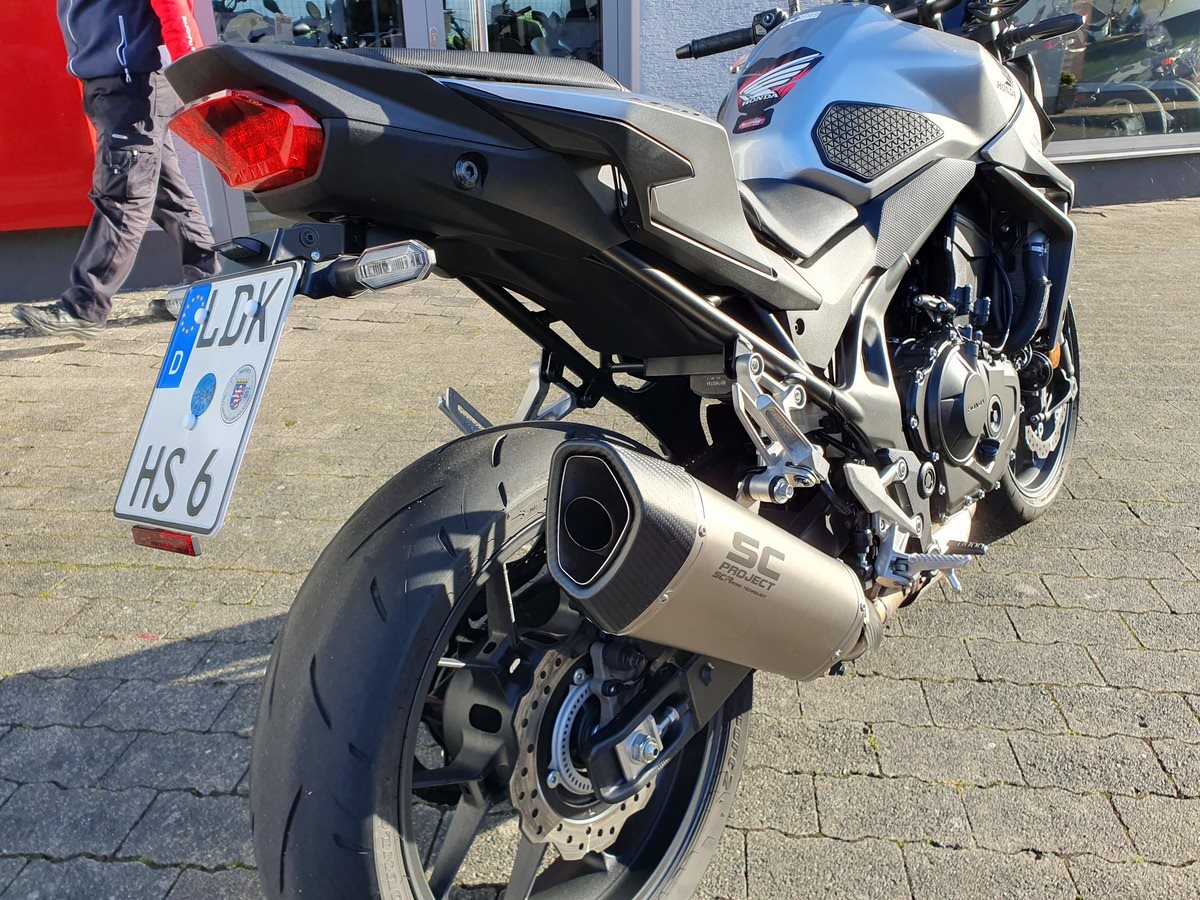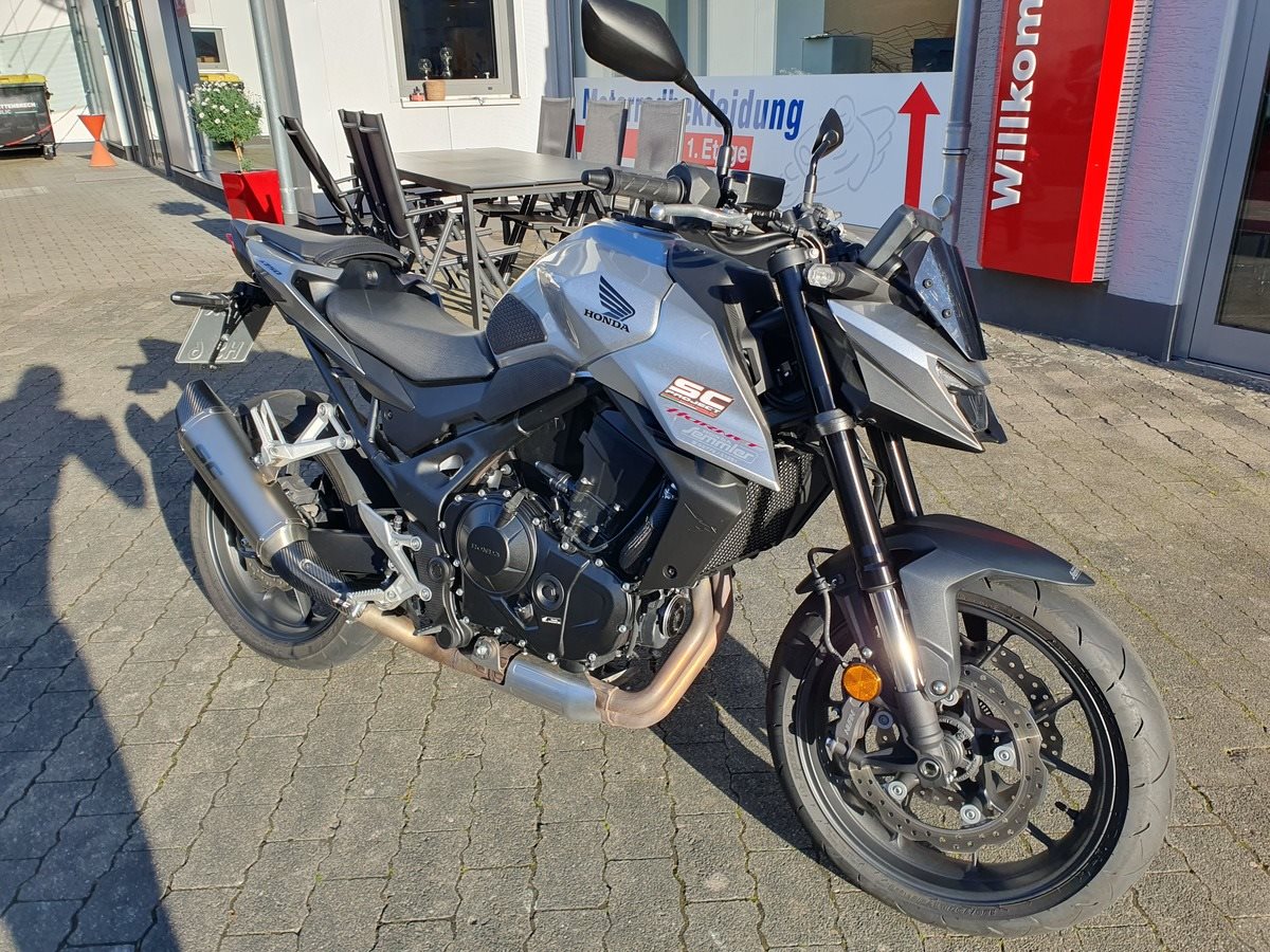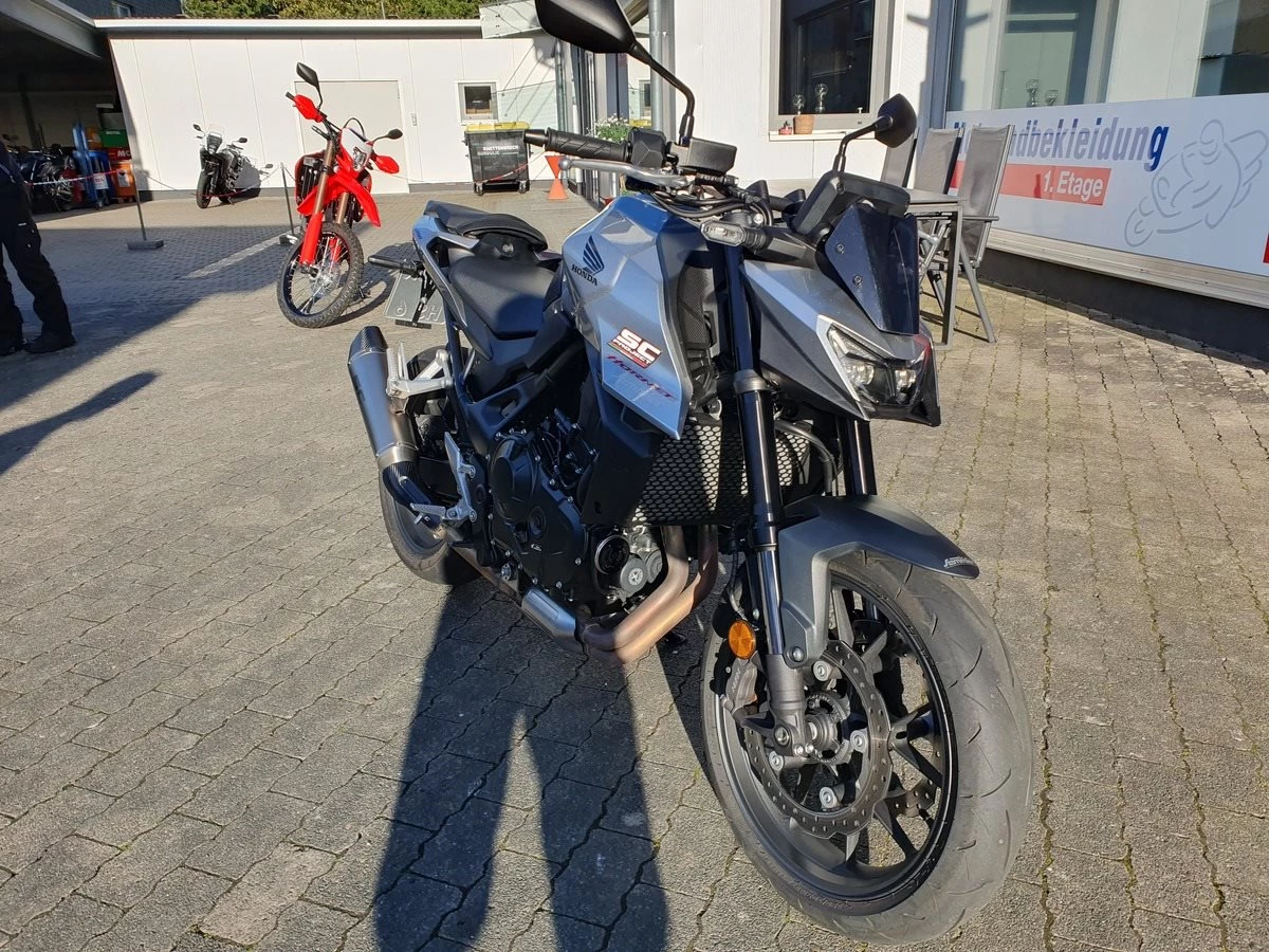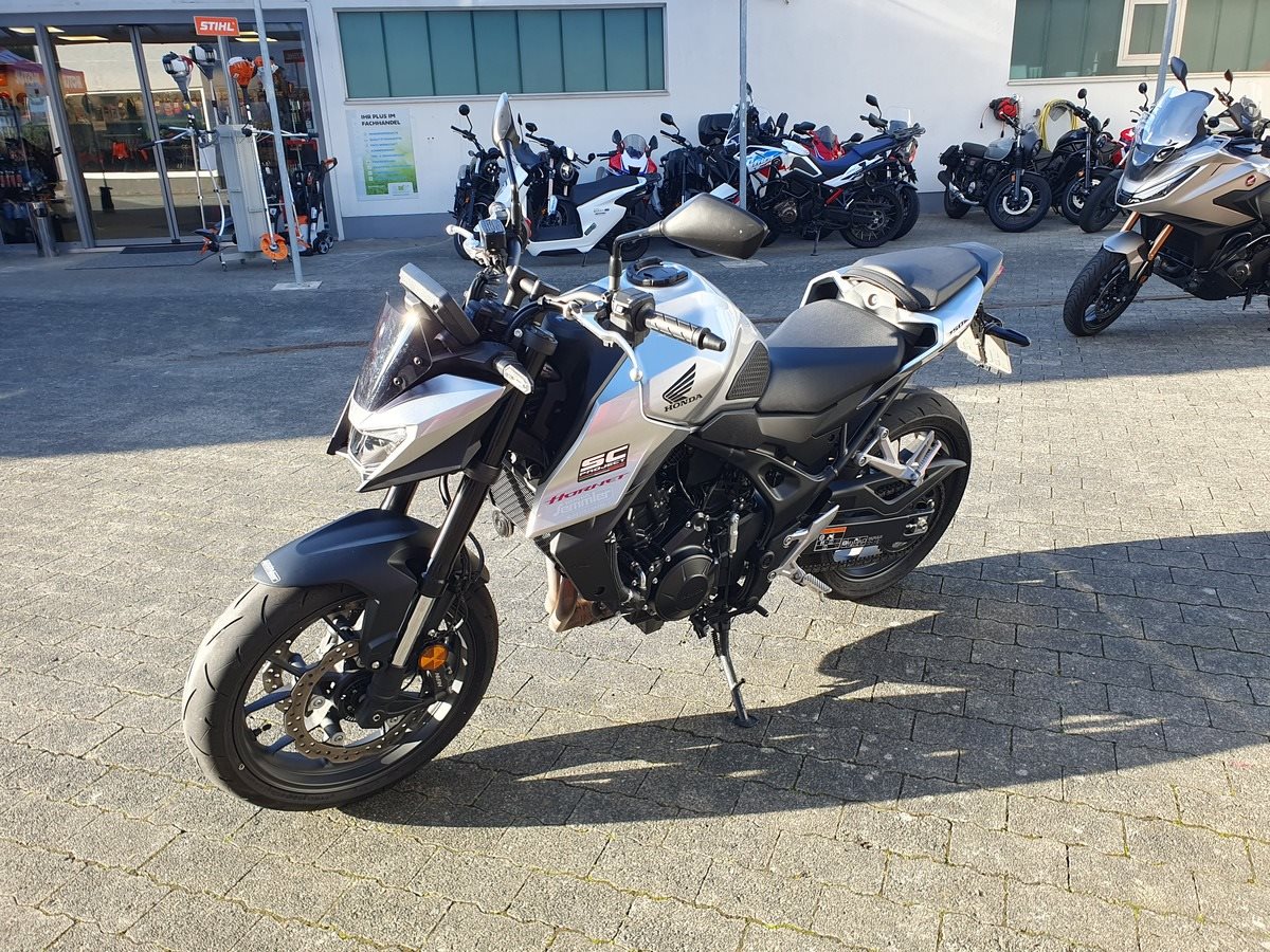 Honda Hornet 750 Modelljahr 2025 mit neuem Design und Euro 5+ Norm. Die Maschine ist unser Vorführbike aus der Saison 2025 ( Unfallfrei und Umfallfrei ) und hat ein paar schöne Zubehörteile montiert. Einen kleinen Windabweiser am Cockpit, den SC-Project Endschalldämpfer, einen kurzen Kennzeichenhalter, den Honda Quickshifter, seitliche Tankschutzpads und einen SW-Motech Tankring. Die Maschine hat schon einen Neuen Satz Reifen Dunlop Sportsmart MK4 drauf bekommen. Sie bekommt bei Verkauf noch eine Inspektion und Neuen TÜV!