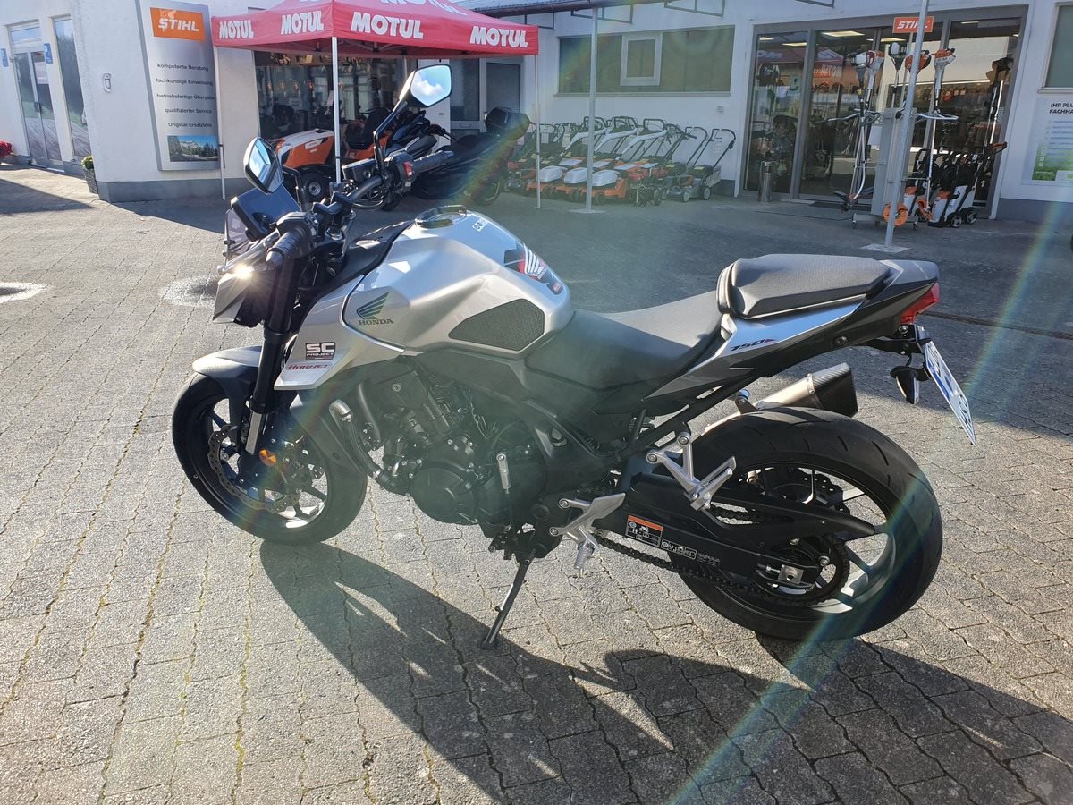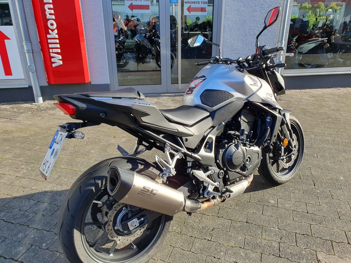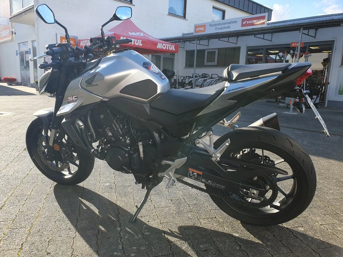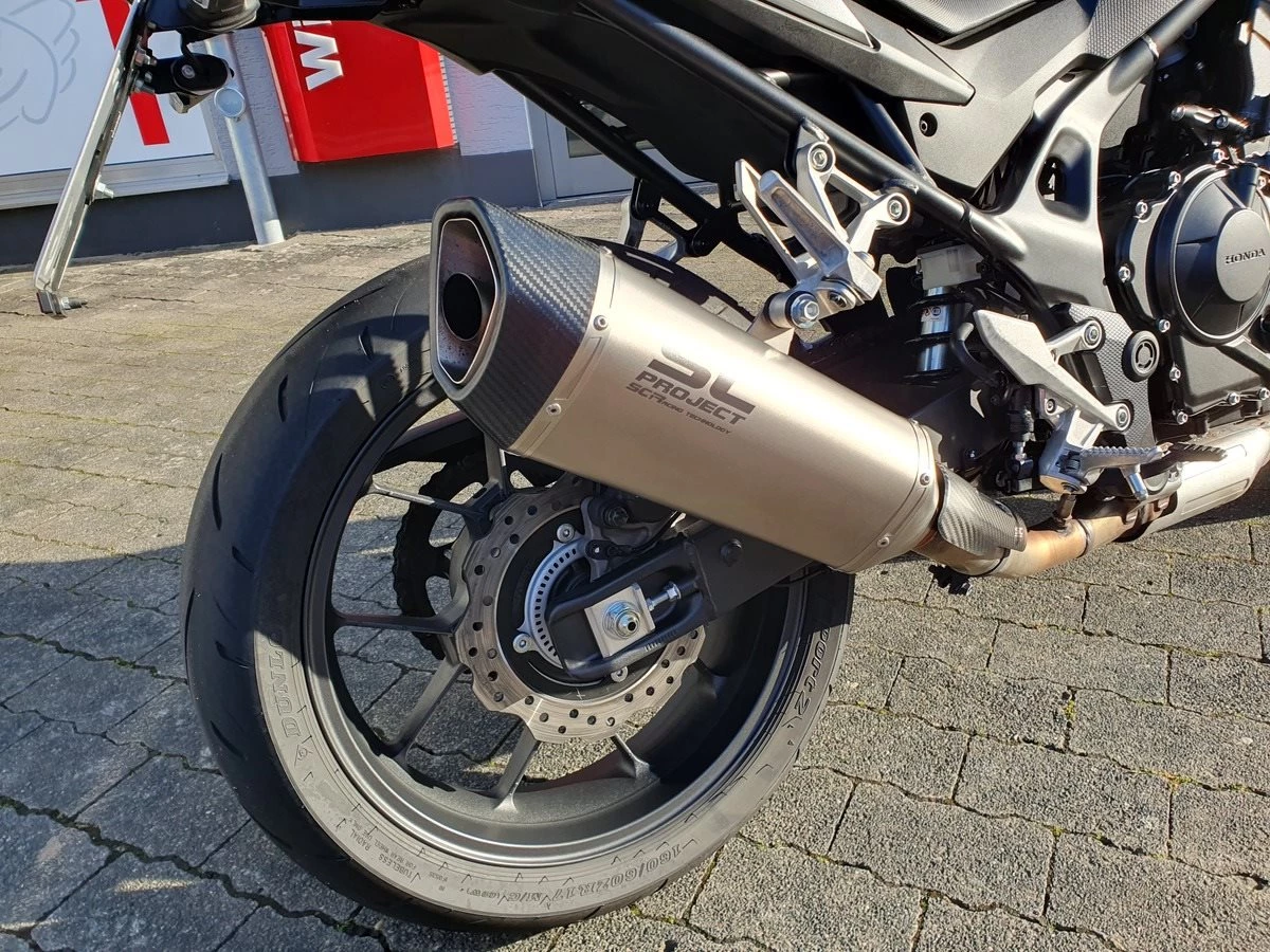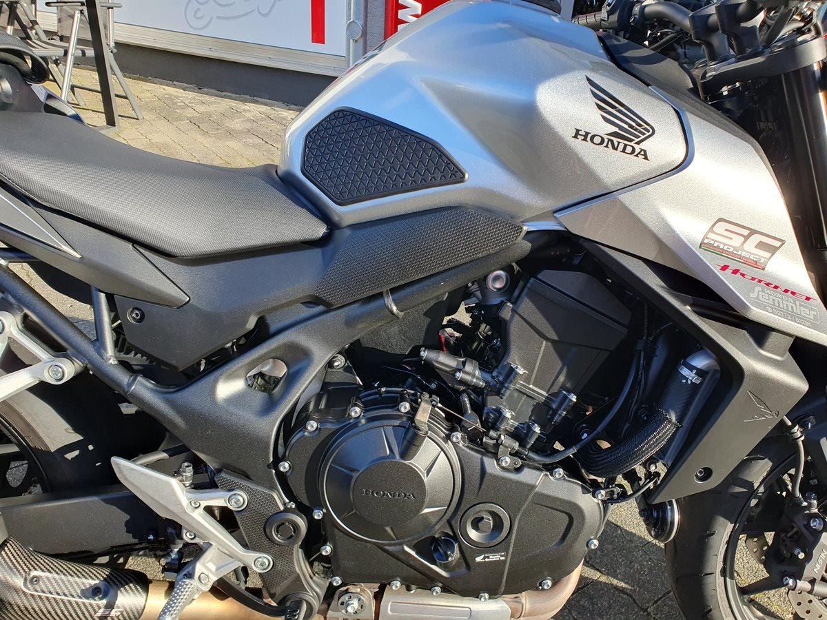 Honda Hornet 750 Modelljahr 2025 mit neuem Design und Euro 5+ Norm. Die Maschine ist unser Vorführbike aus der Saison 2025 ( Unfallfrei und Umfallfrei ) und hat ein paar schöne Zubehörteile montiert. Einen kleinen Windabweiser am Cockpit, den SC-Project Endschalldämpfer, einen kurzen Kennzeichenhalter, den Honda Quickshifter, seitliche Tankschutzpads und einen SW-Motech Tankring. Die Maschine hat schon einen Neuen Satz Reifen Dunlop Sportsmart MK4 drauf bekommen. Sie bekommt bei Verkauf noch eine Inspektion und Neuen TÜV!