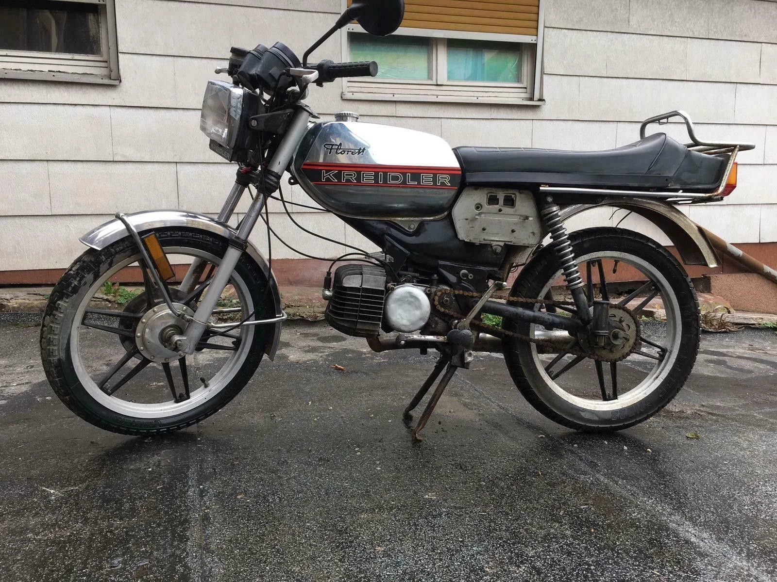 Biete eine Kreidler RMC Bj.1980 mit original Betriebserlaubnis mit verbautem Kreidler RS Motor, direkt Schaltung. Vorhandene Gänge lassen sich schalten. Der Originalmotor ist auch dabei, jedoch mit RS Getriebe verbaut.