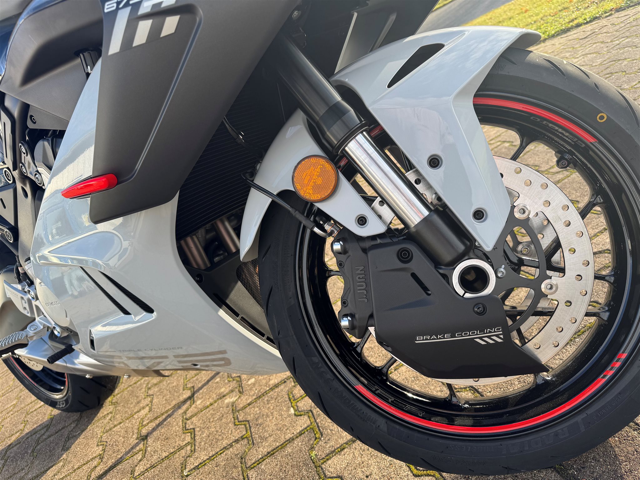Die neue CFMOTO 675SR-R ist gebaut für alle, die Racing nicht nur erleben, sondern leben wollen. Ihr neuer Dreizylinder liefert 90 PS und 68 Nm Drehmoment kombiniert mit einem ultraleichten Alurahmen, Quickshifter, TCS und voll einstellbarem KYB-Fahrwerk. Das Ergebnis: kompromisslose Sportlichkeit, präzises Handling und purer Adrenalinschub auf jeder Strecke.