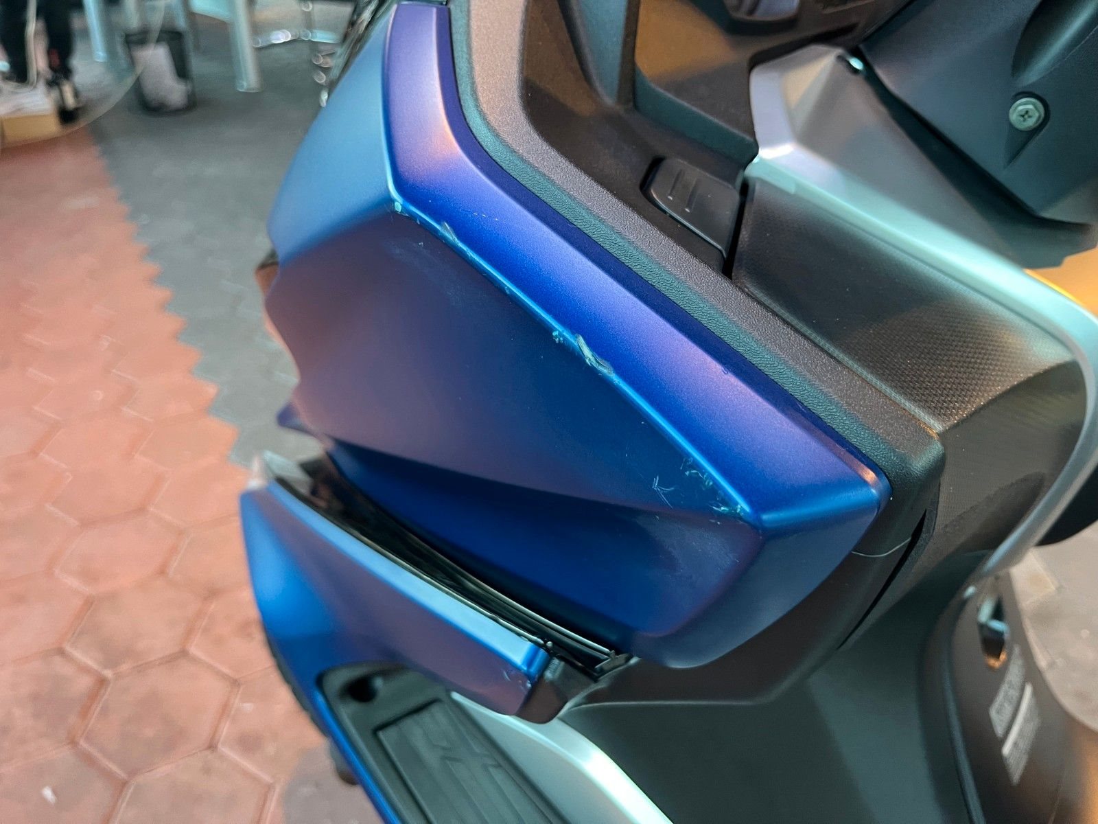 Der Roller ist einmal im Stand auf die linke Seite langsam gekippt, hierdurch sind leichte Kratzer an der linken vorderen Seitenverkleidung (siehe Fotos)