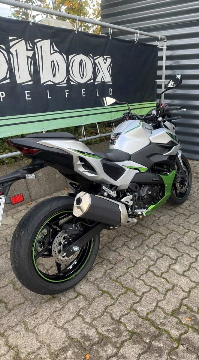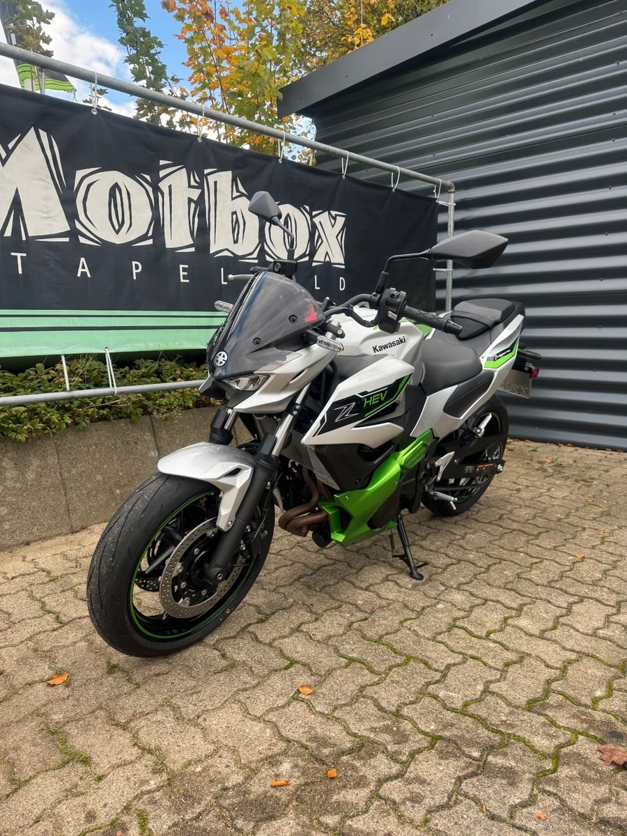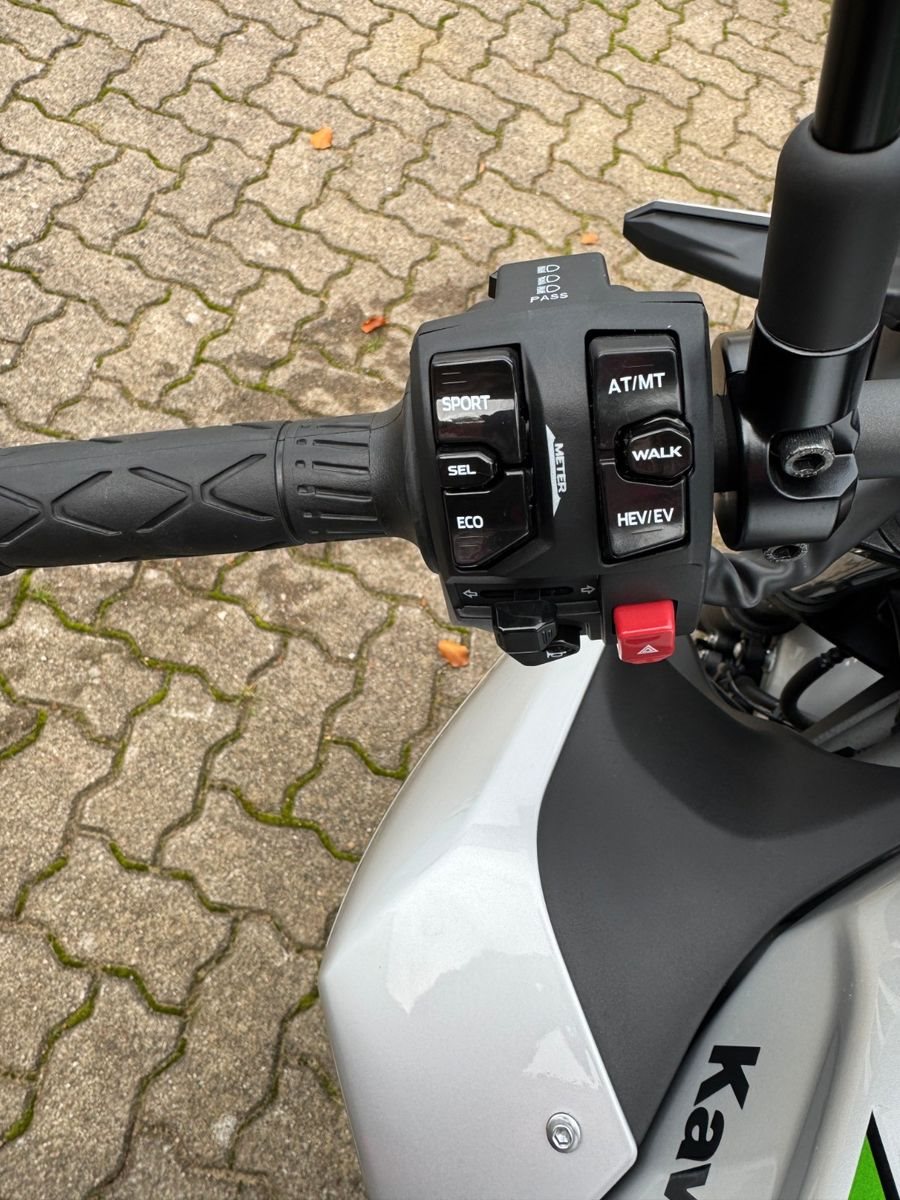 Das weltweit ersteVoll-Hybrid-Motorrad*von Kawasaki. Die einzigartige Kraftentfaltung eines Verbrennungsmotors mit 451 cm und einem kompakten E-Antrieb schafft ein besonderes Fahrerlebnis beim weltweit ersten Voll-Hybrid-Motorrad: Ein Mittelklasse-Bike mit dem Beschleunigungsvermo?gen eines 1.000-cm-Sportmotorrads aus dem Stand (mit E-Boost) - der Verbrauch entspricht aber der 250-Kubikzentimeter-Klasse. Wie das Schwestermodell Ninja 7 Hybrid verfu?gt auch die Z7 Hybrid u?ber drei unterschiedliche Fahrmodi und eine Vielzahl innovativer Details. Eine neue A?ra im Motorradbau hat begonnen.
