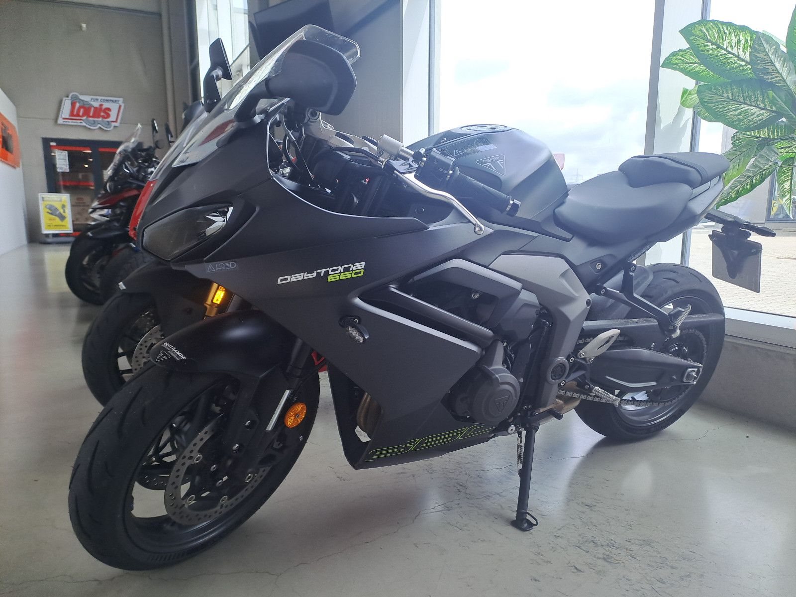 Angeboten wird hier eine Triumph Daytona 660 in der Farbe Satin Granite /Satin Jet Black von Triumph-Emsland in Emsbüren!
