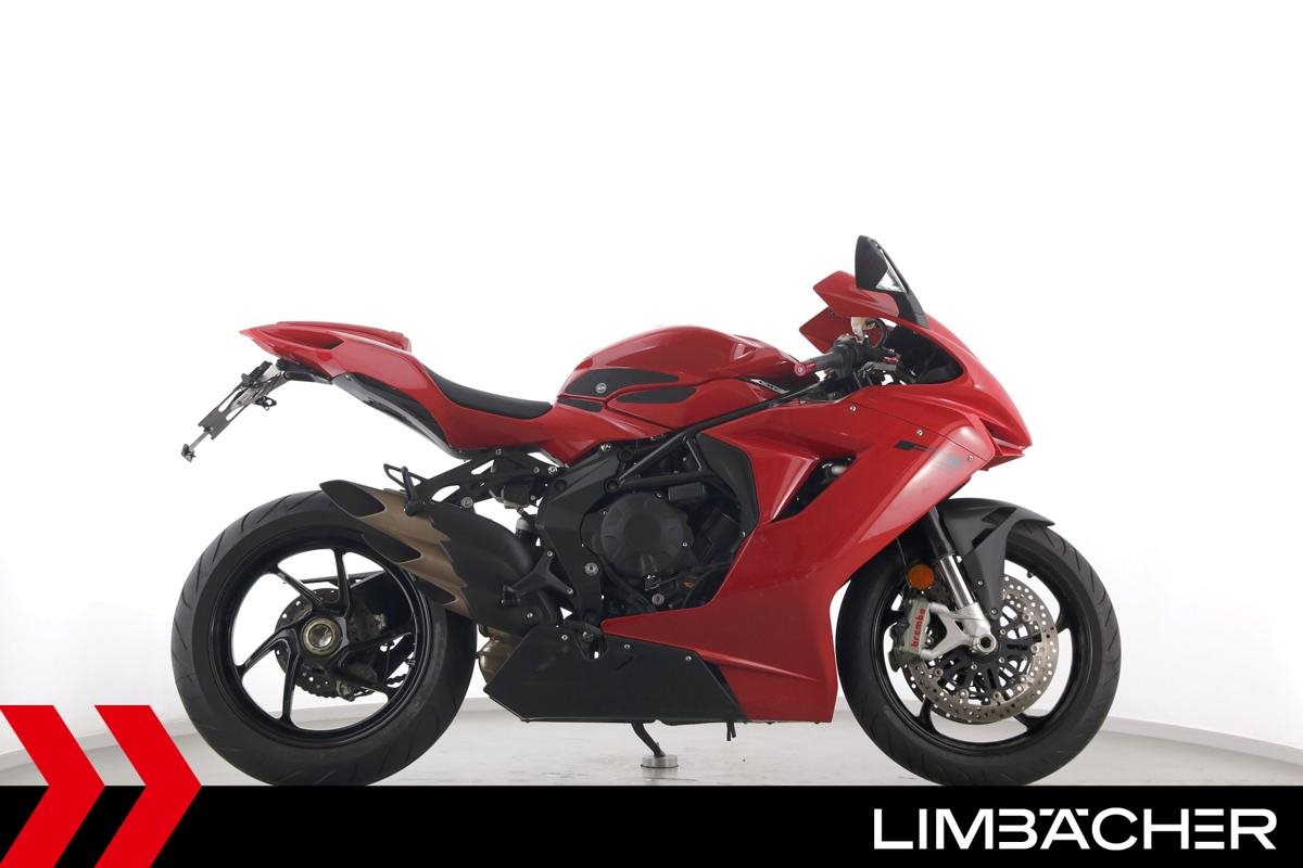 Eine MV Agusta F3 800 Rosso aus zweiter Hand in gepflegtem Zustand u.a. mit kurzem Kennzeichenhalter und Rizoma-LED-Blinkern hinten.