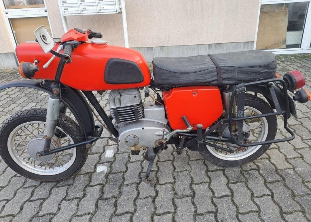 Die MZ springt dank der 12 V Anlage gut an und fährt auch so.