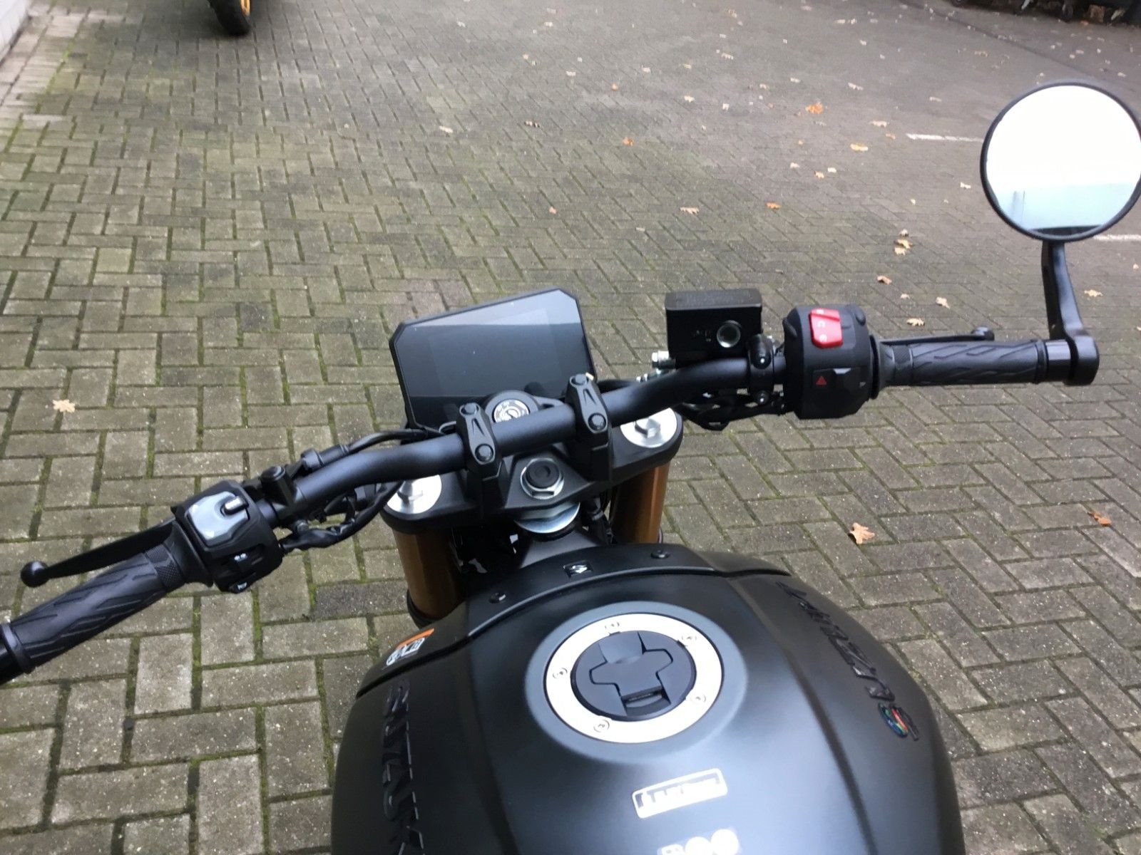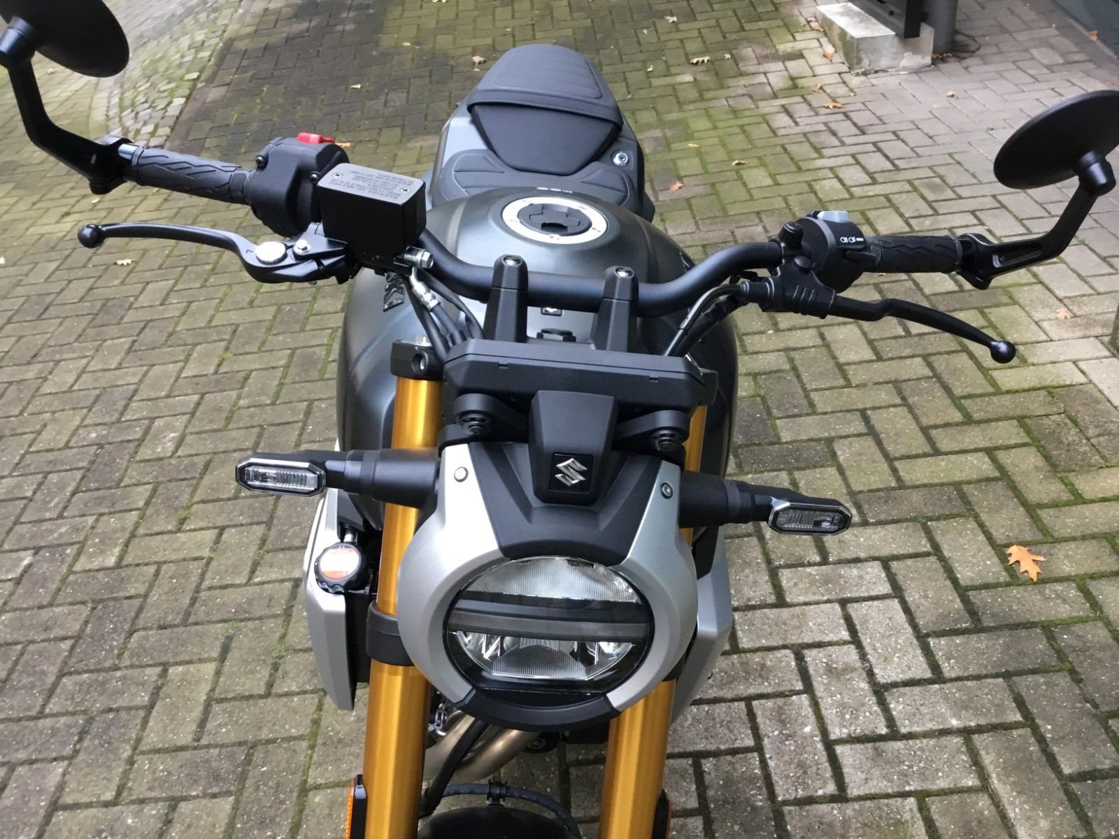 - Einmal zum ersten Mal Kommt klassisch, ist aber zum ersten Mal serienmäßig bei einer Suzuki: die am Lenkerende montierten Spiegel. Sie integrieren sich perfekt in den Look der GSX-8T, werden dich aber auch funktional überzeugen. Durch ihre Position hast du ein offenes, größeres Sichtfeld.