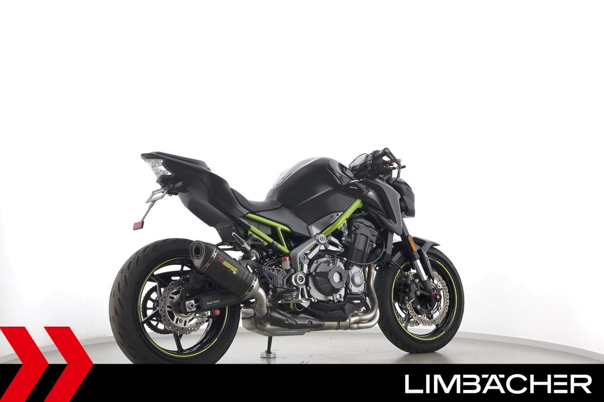 Eine Kawasaki Z 900 in gepflegtem Zustand u.a. mit Akrapovic-Endschalldämpfer sowie kurzem Kennzeichenhalter.