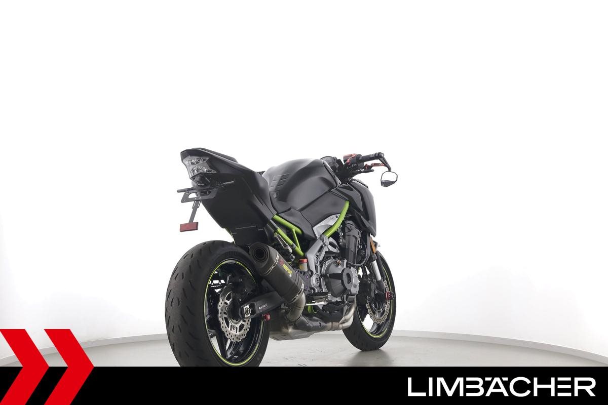 Eine Kawasaki Z 900 in gepflegtem Zustand u.a. mit Akrapovic-Endschalldämpfer sowie kurzem Kennzeichenhalter.