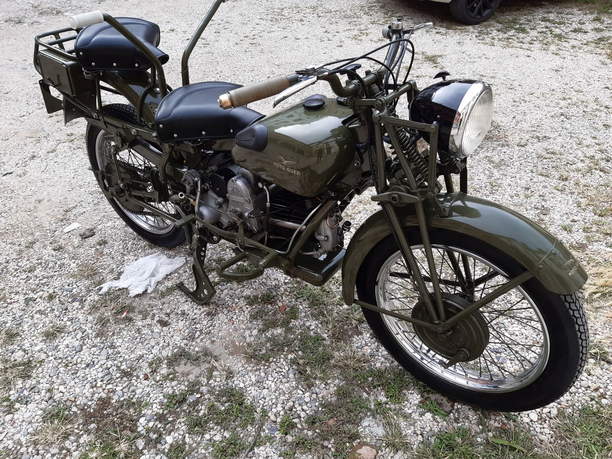 Wegen Sammlungsauflösung Moto Guzzi Superalce EZ. 1952, ex-Esercito Italiano, ganz original restauriert, läuft-bremst usw., muss in Italien bei Verona abgeholt werden. Preis VB.