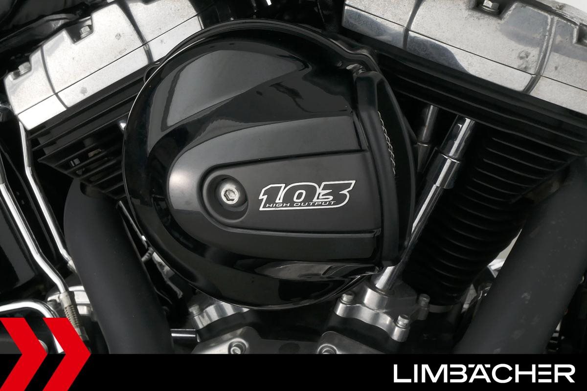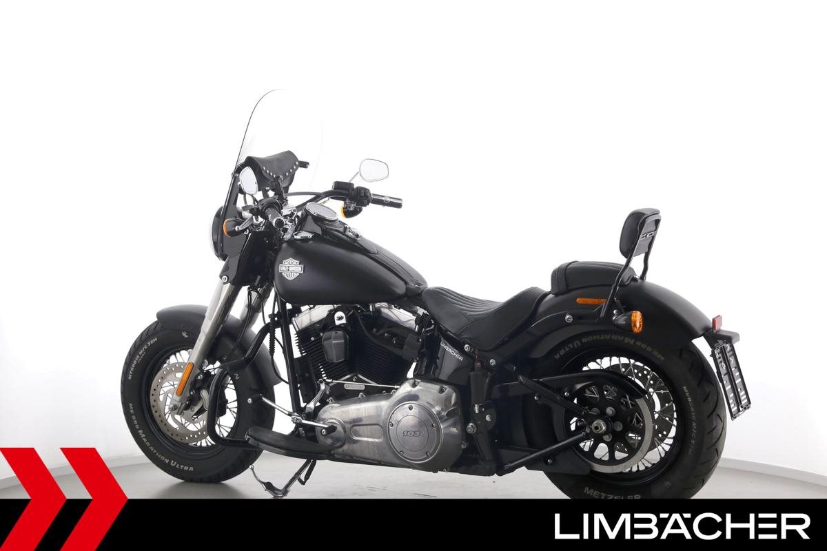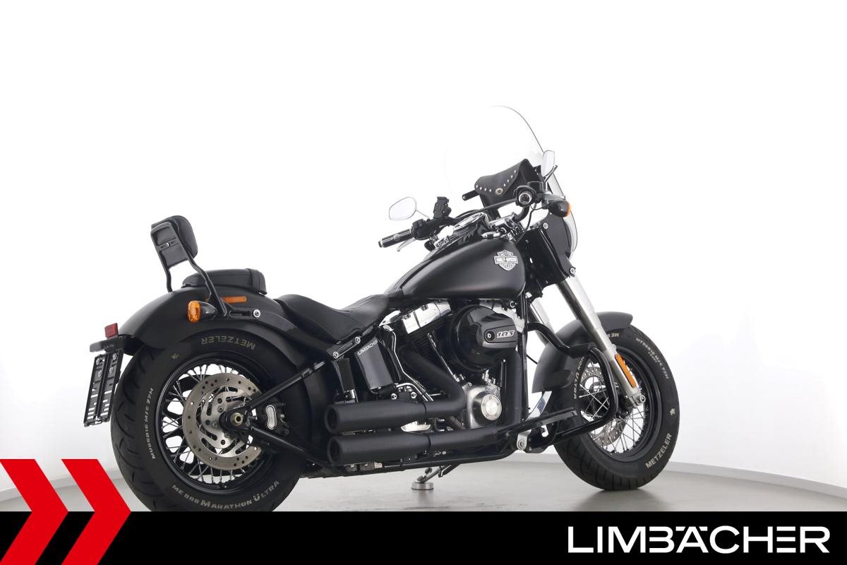 Eine scheckheftgepflegte Harley-Davidson Softail Slim FLS 103 in gepflegtem Zustand u.a. mit Kesstech-Klappenauspuff und Sturzbügel.