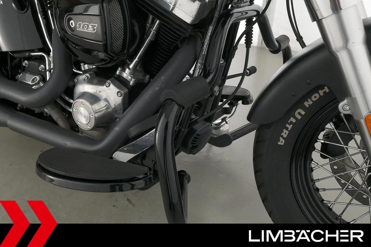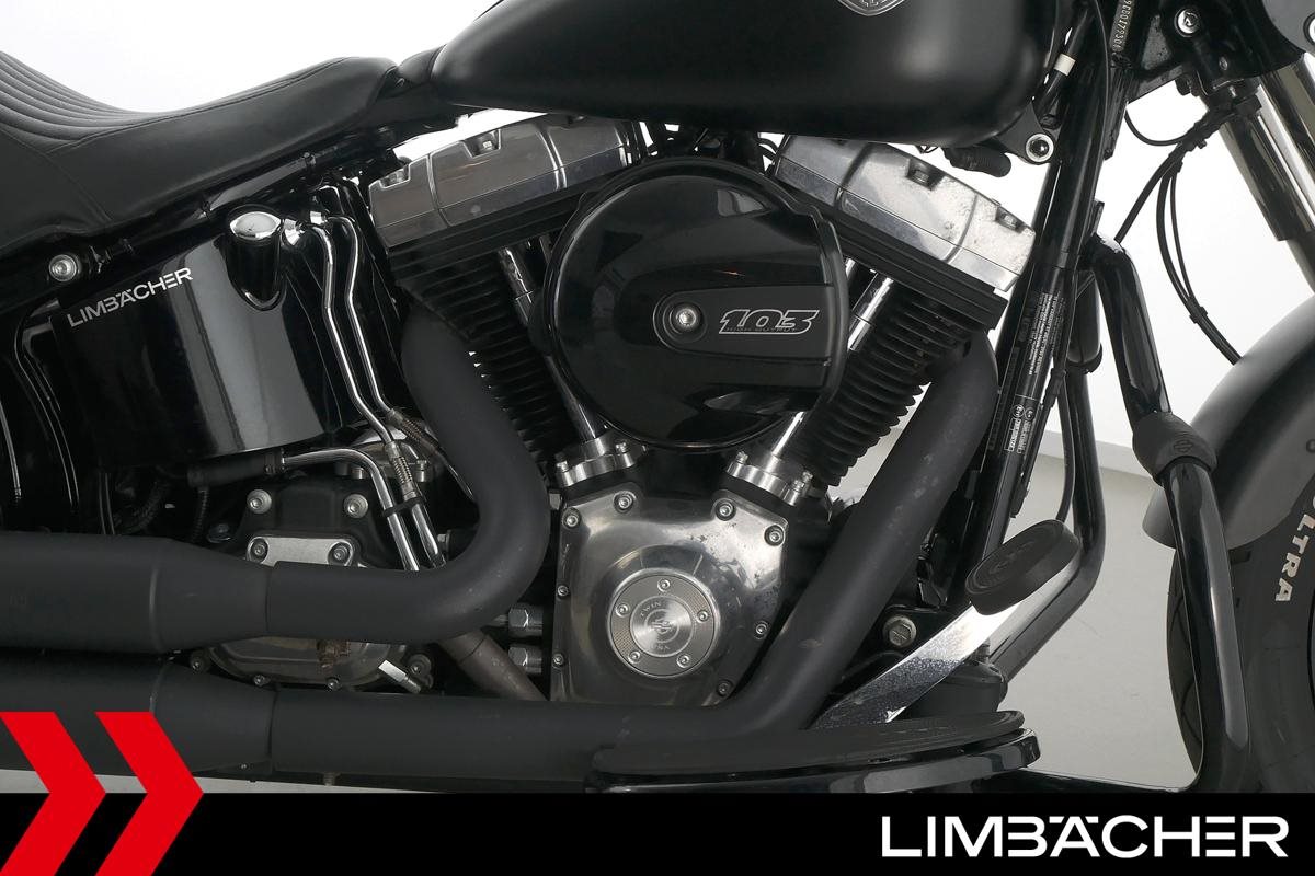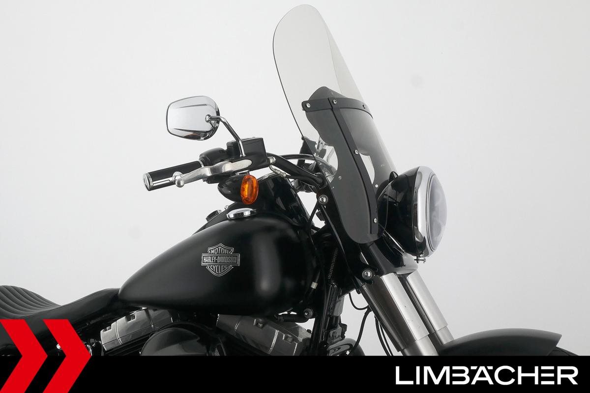 Eine scheckheftgepflegte Harley-Davidson Softail Slim FLS 103 in gepflegtem Zustand u.a. mit Kesstech-Klappenauspuff und Sturzbügel.
