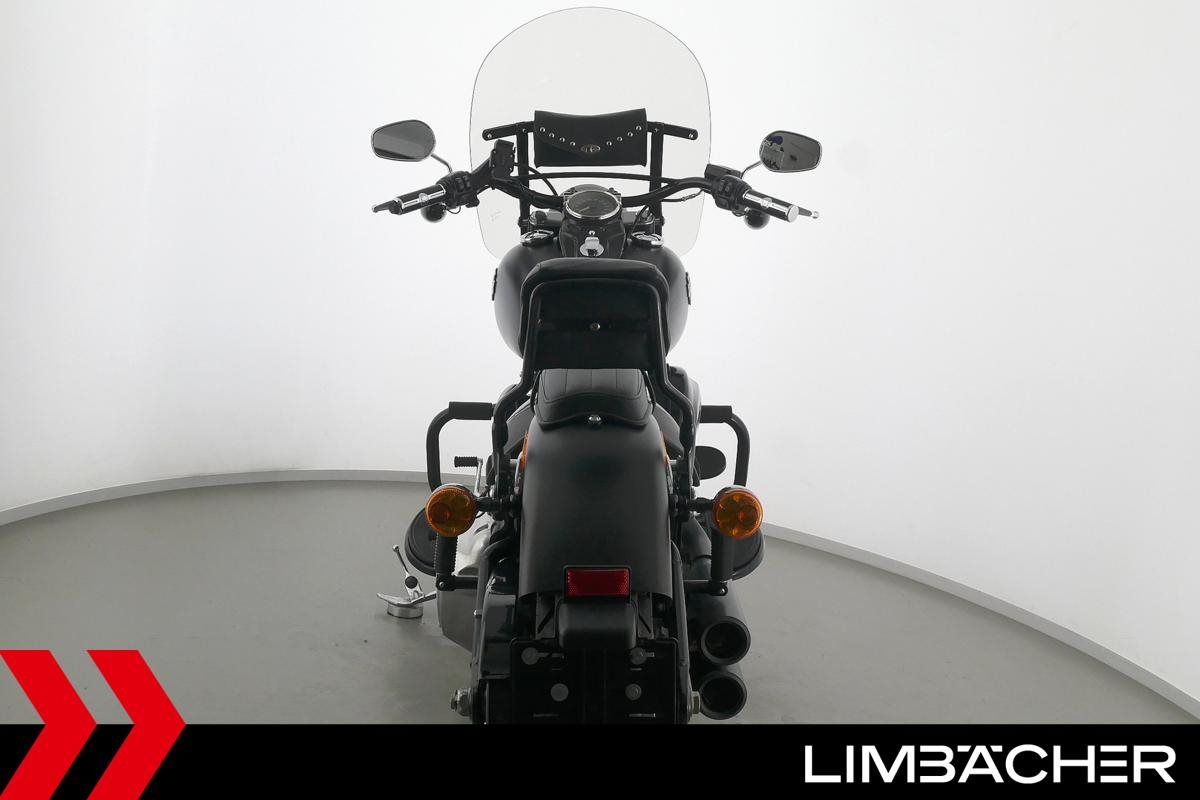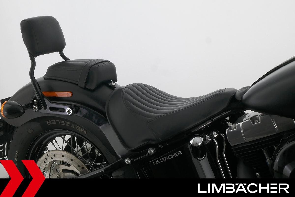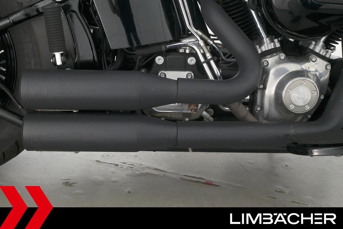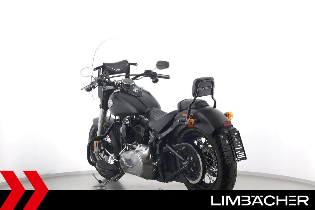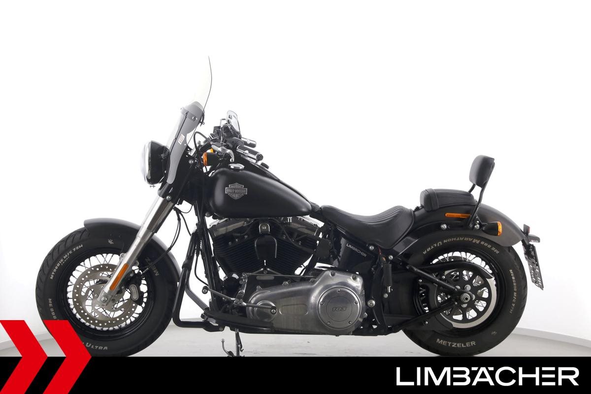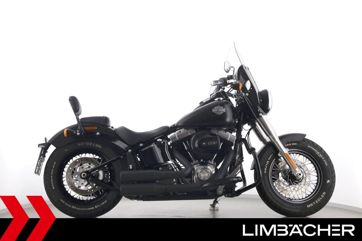 Eine scheckheftgepflegte Harley-Davidson Softail Slim FLS 103 in gepflegtem Zustand u.a. mit Kesstech-Klappenauspuff und Sturzbügel.