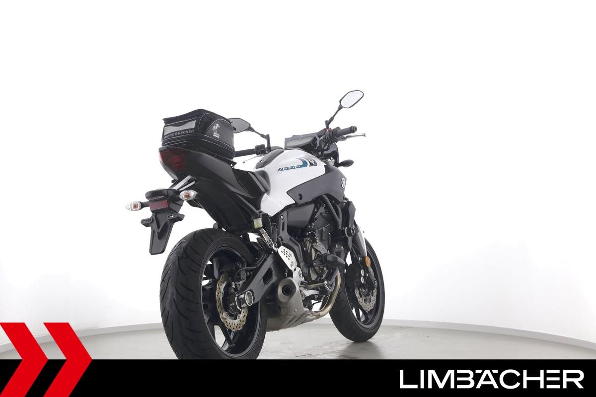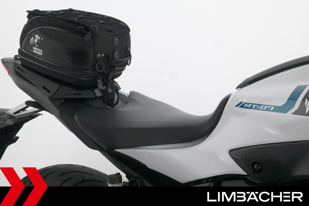 Eine scheckheftgepflegte Yamaha MT-07 aus erster Hand in gepflegtem Zustand u.a. mit Hecktasche von Hepco+Becker sowie Sturzpads.