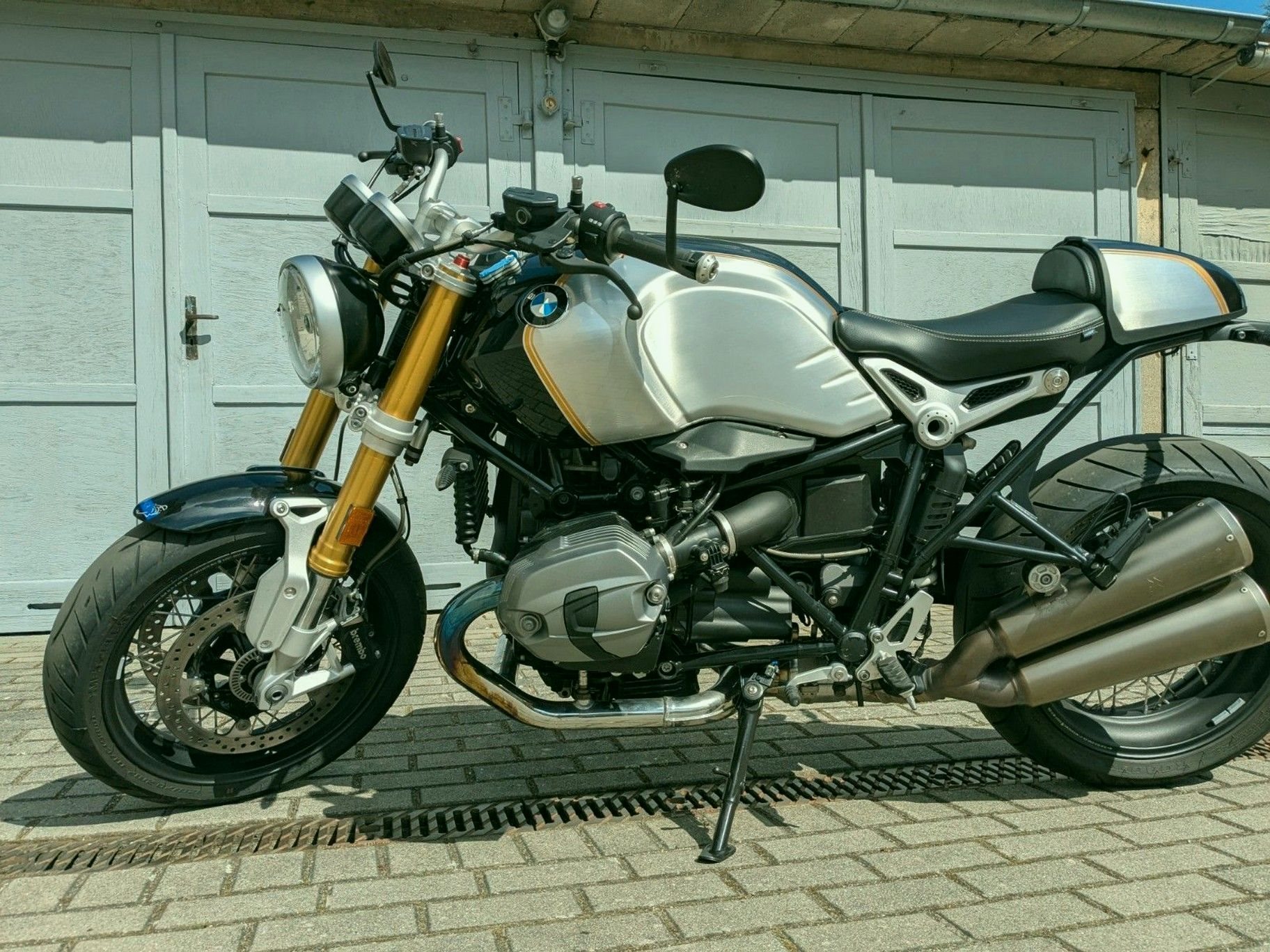 10.000er Service meine wunderschöne R nine T in einer sehr seltenen 2-Farben Kombination (blau-metallic / alu-gebürstet). Ich habe lediglich Lenkerenden-Spiegel verbaut, der Rest ist original (Akrapovic-Auspuffanlage / Höckerabdeckung für Sozius / Speichenräder). Die originalen Spiegel sowie ein Soziussitz und ein zusätzlicher Spritzschutz für das Hinterrad sind Bestandteil des Verkaufs.