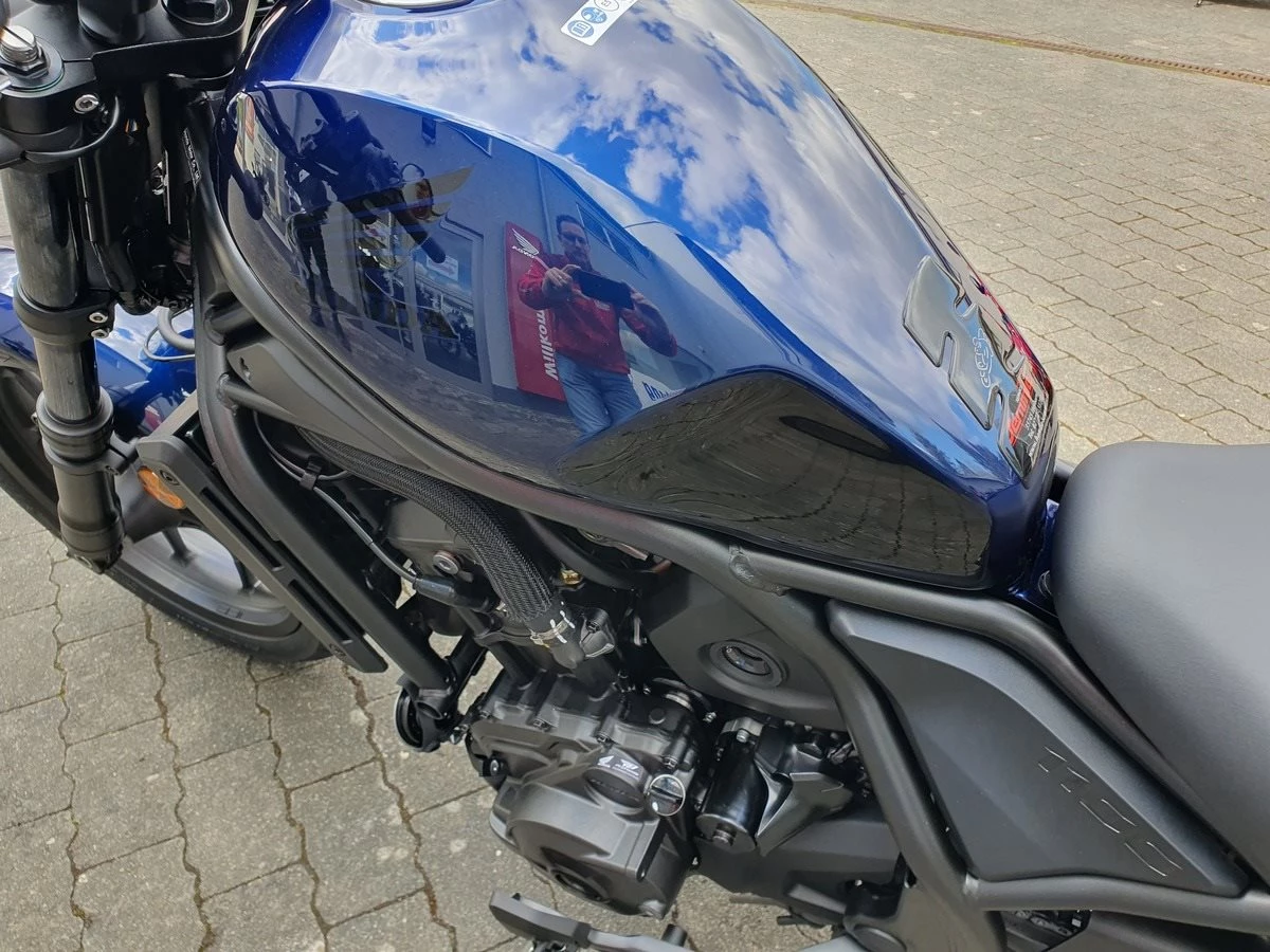 Modelljahr 2025. Die entspanntere Sitzposition mit erhöhtem und in Richtung des Fahrers nach hinten versetztem Lenker, nach vorn versetzten Fußrasten (50mm) und 10 mm höherem Sitz bietet mehr Komfort und Sicherheit. Hinzu kommt das neue 5-Zoll-TFT-Display mit Smartphone-Konnektivität per Honda RoadSync, mit dem du unterwegs auf dem Laufenden bleibst.