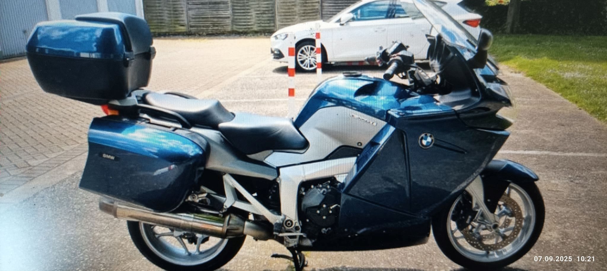 Die BMW hat zwei original Seitenkoffer, ein großes Original Topcas und noch ein kleines, dazu kommt noch ein Tankrucksack.